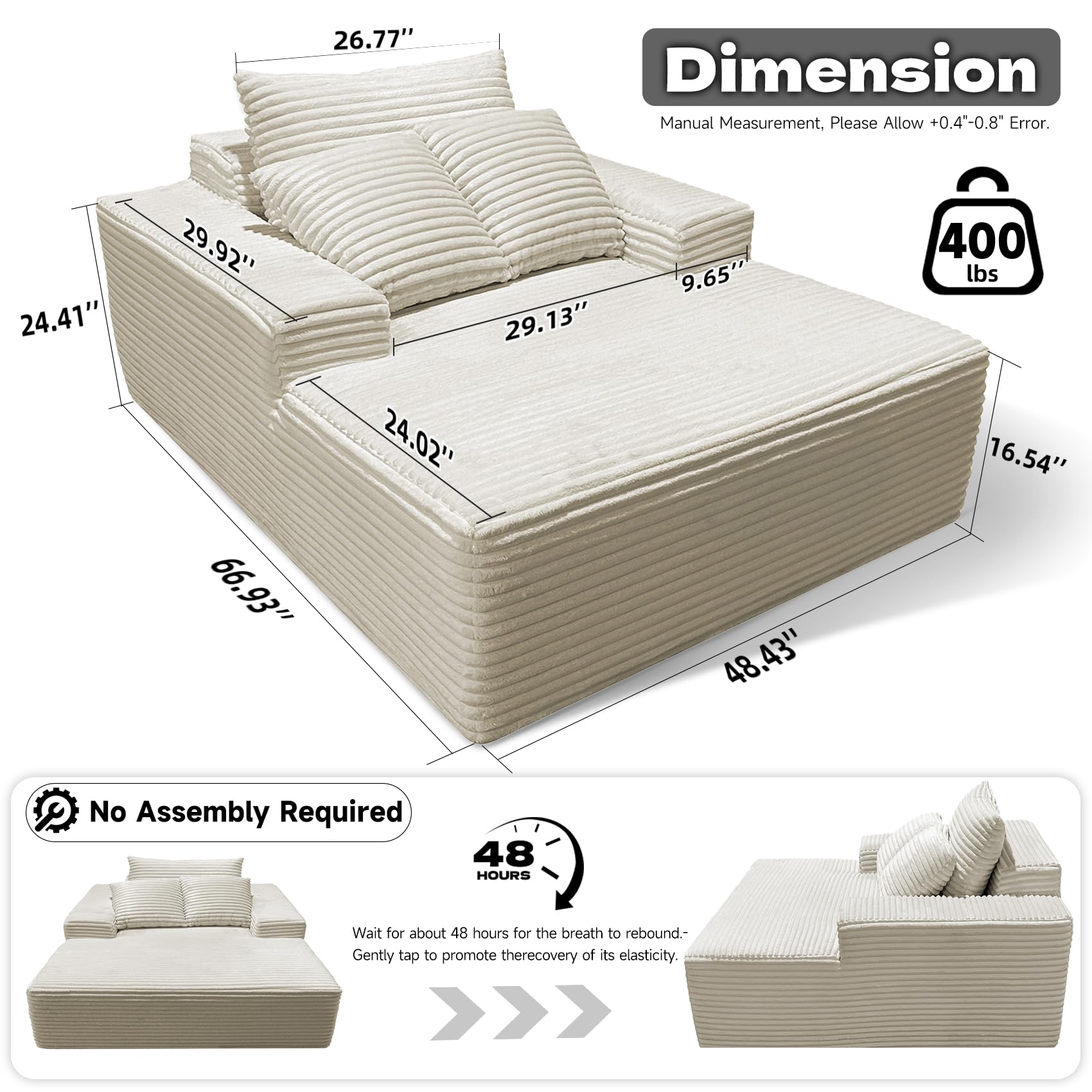 - Spacious Couch: The oversized boneless couch measures 68”L x 49.2”W x 25.5”H, providing ample seating area for various body types. Chaise lounge indoor provides support and a cushioned feel, which improves the overall comfort of the chaise lounge