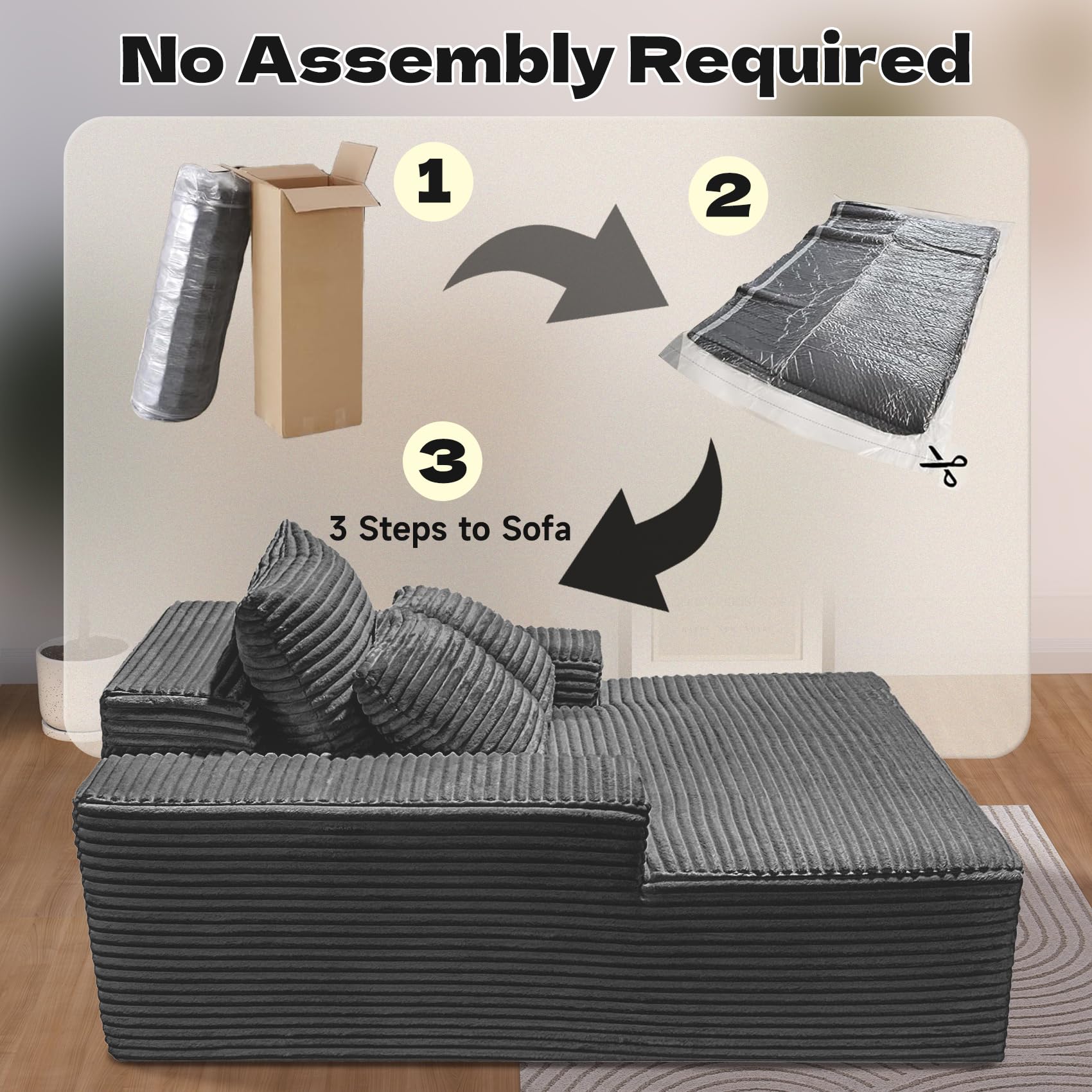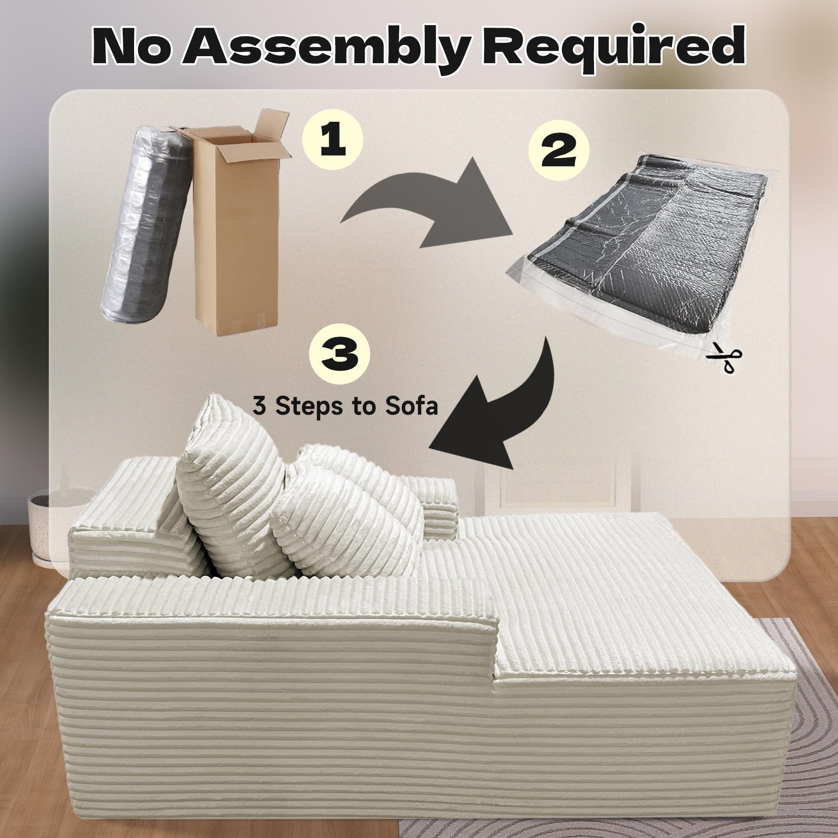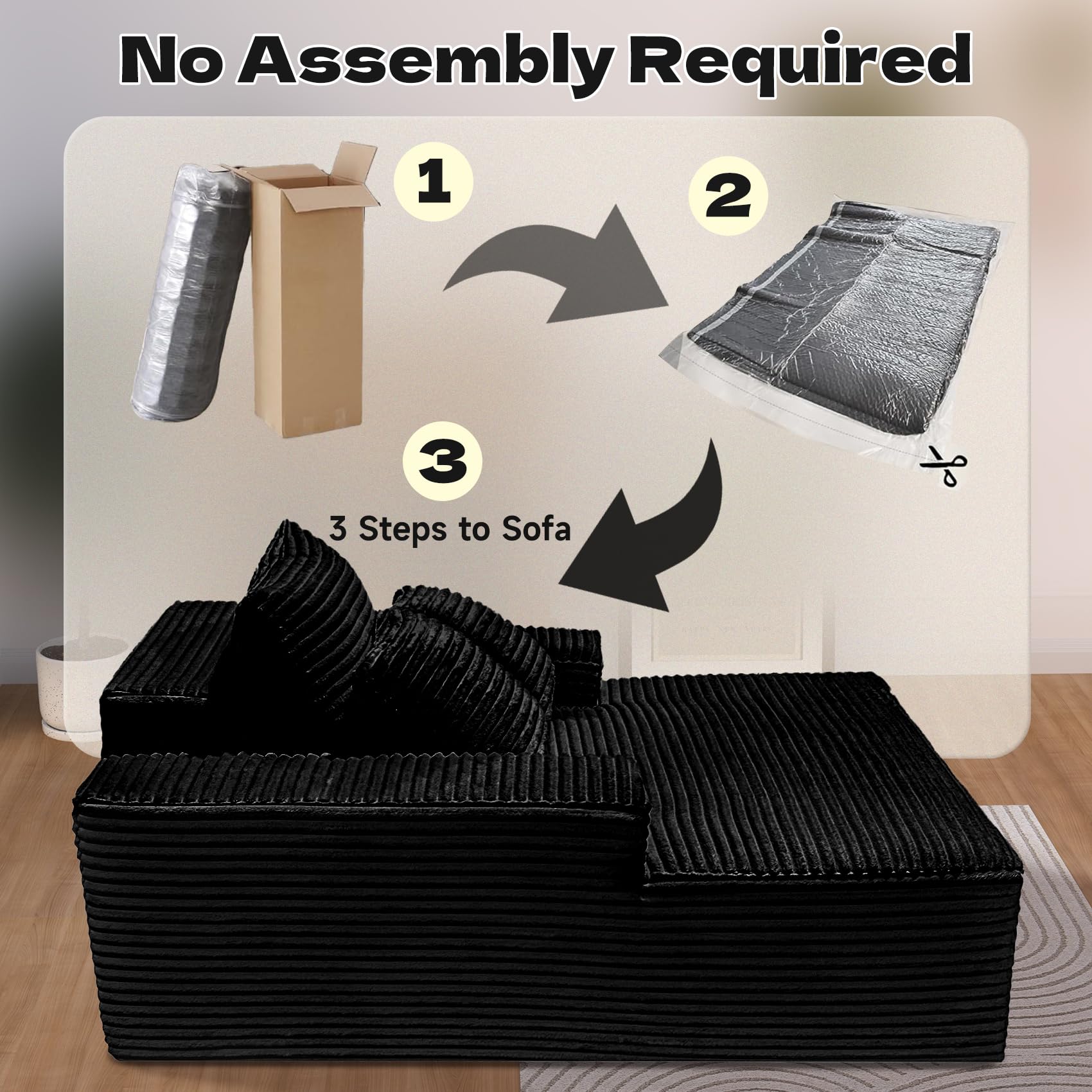 - No Assembly: Enjoy easy setup with our couch in a bag that requires no tools or complicated assembly.Just give it a light tap once you've taken it out of the packaging, and chaise chair will gradually bounce back to its original shape within 48 hours, ensuring your oversized Lounge chair is ready for comfortable lounging right out of the box