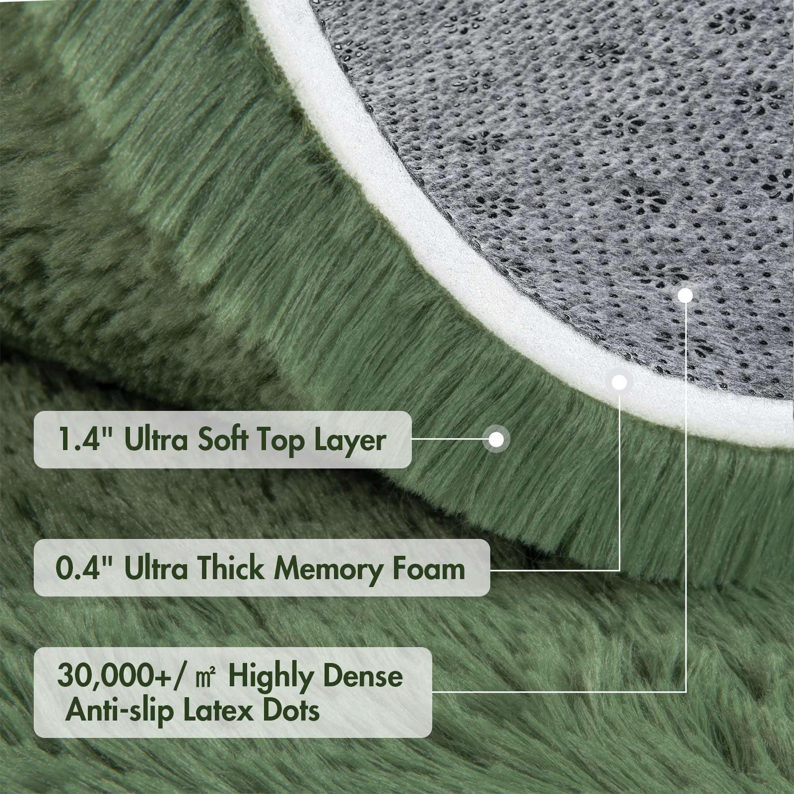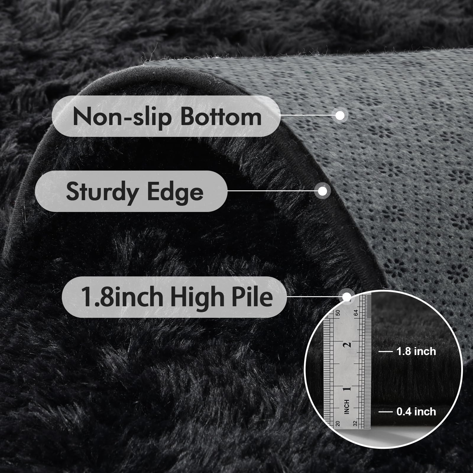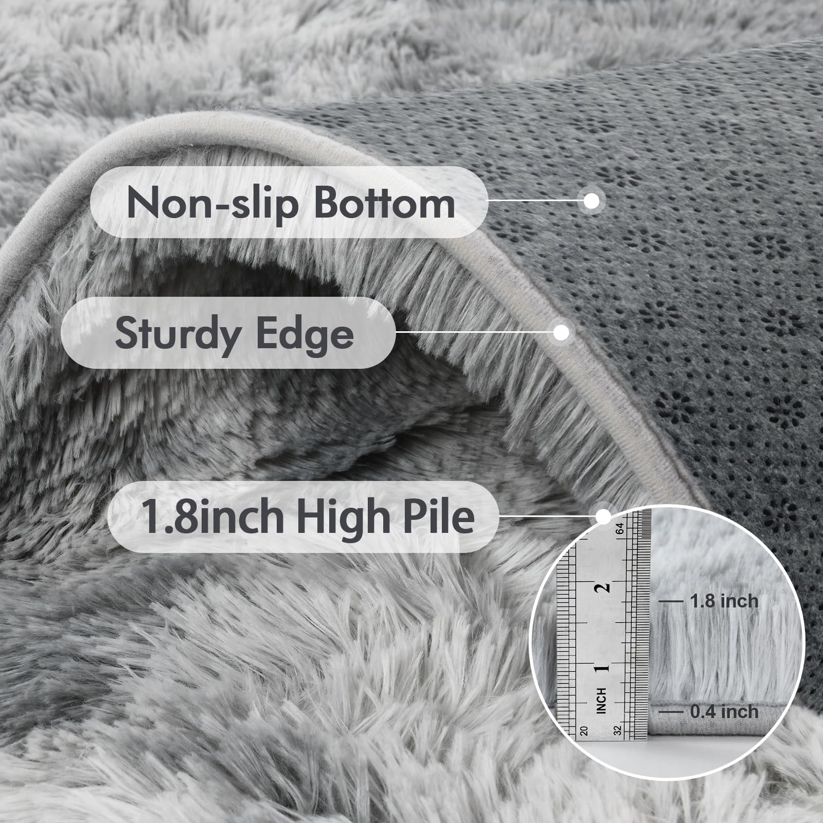 - 【Ultra Soft】Crafted with a shaggy, high-pile surface and cushioned with dense foam, this 1.8-inch thick rug offers cloud-like comfort underfoot. It transforms everyday moments into pure relaxation.