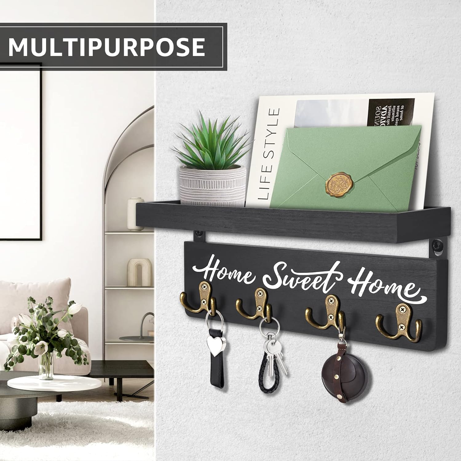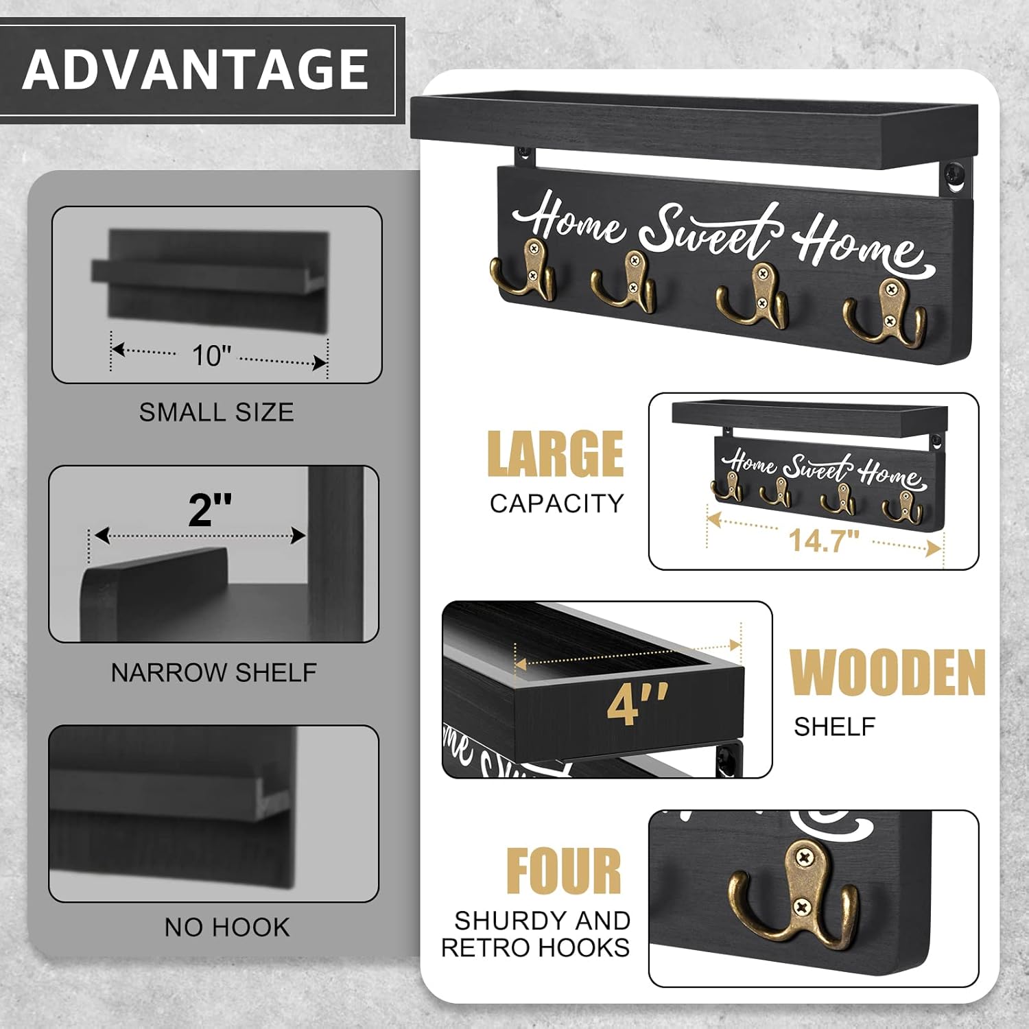 - 【100% NATURAL WOOD】This Black Key Holder For Wall With Shelf is made of Natural wood which is strong and durable,High-quality solid wood resistant to warping, splitting while displaying your favorite home decor to freshen up the entryway