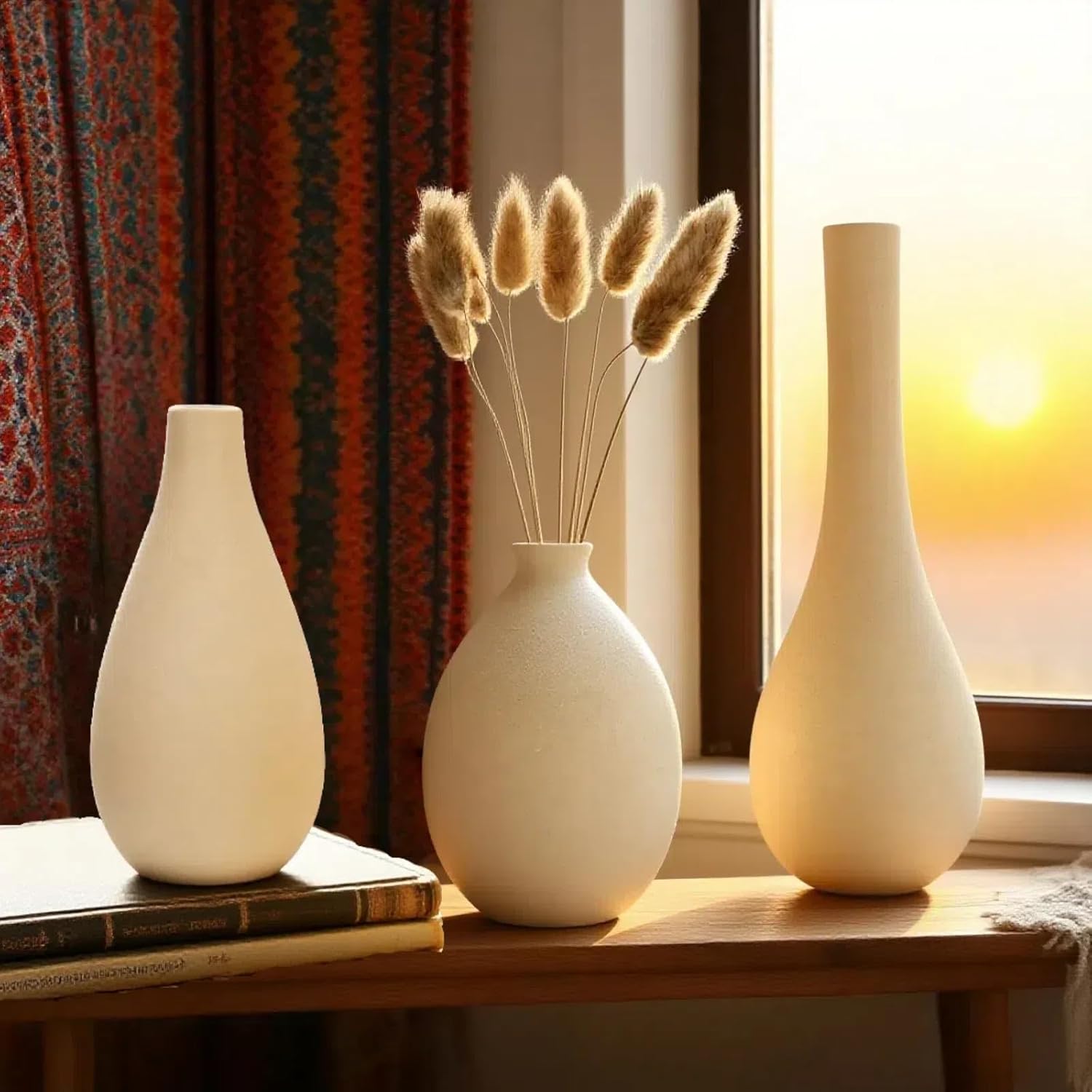 - Modern Minimalist Design – This 3-piece ceramic vase set features smooth, fluid contours and a soft light beige finish, blending contemporary elegance with earthy natural tones. Each piece is uniquely hand-finished, making it a distinctive decor accent perfect for rustic, farmhouse, boho, or modern interiors.