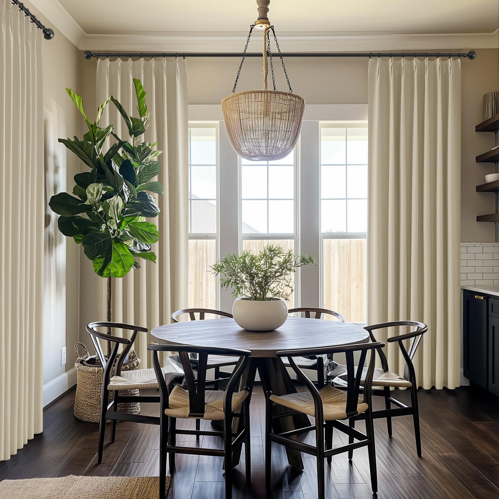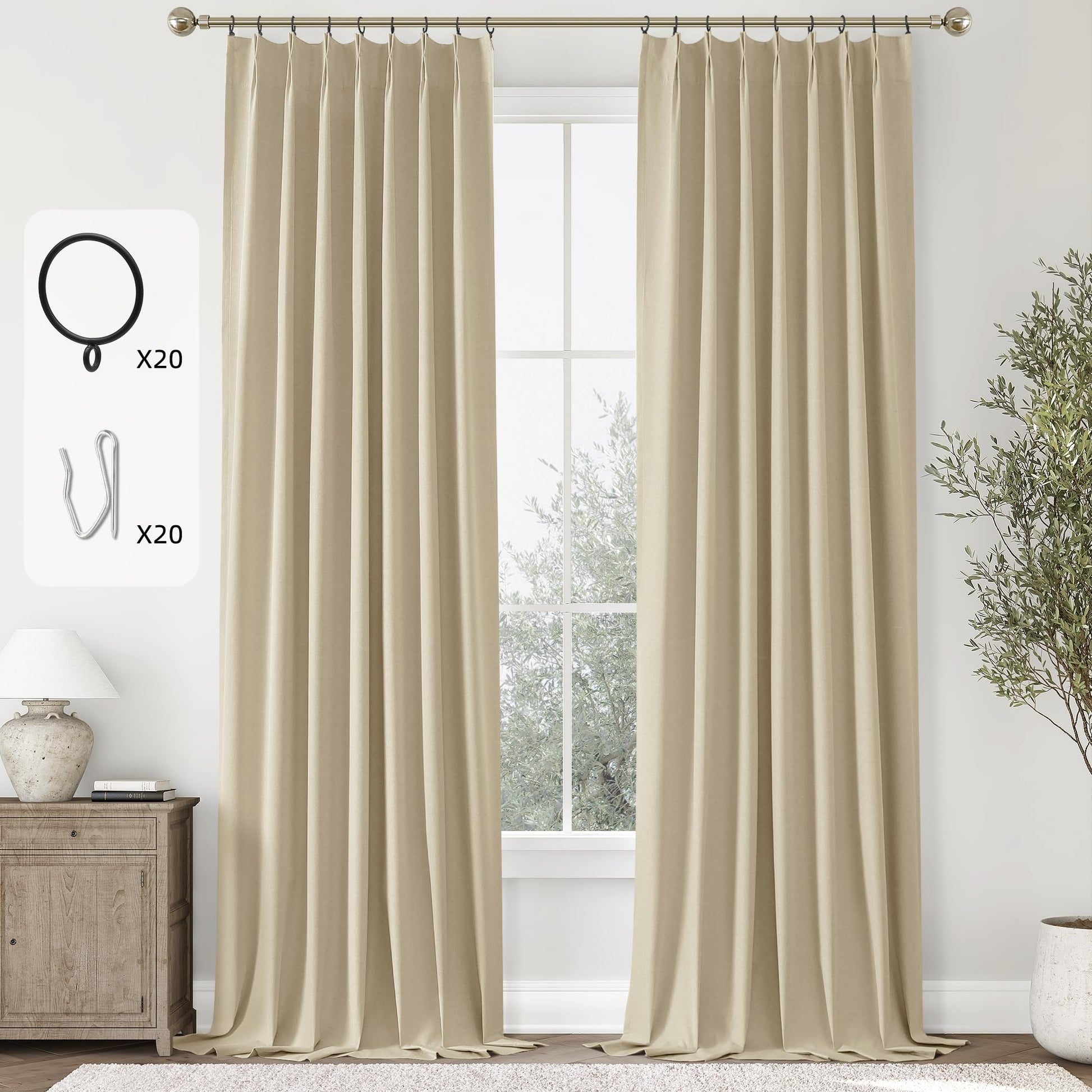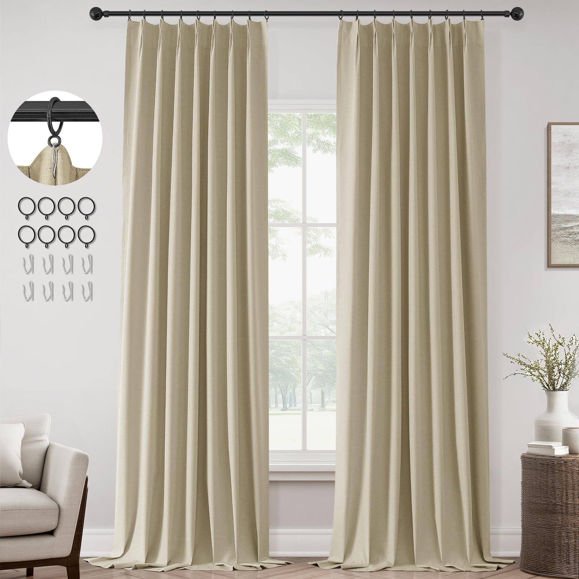 - Natural Linen Texture & Pinch Pleats:Linen blend fabric with permanent pinch pleats for structured folds.Timeless farmhouse elegance with natural drape.