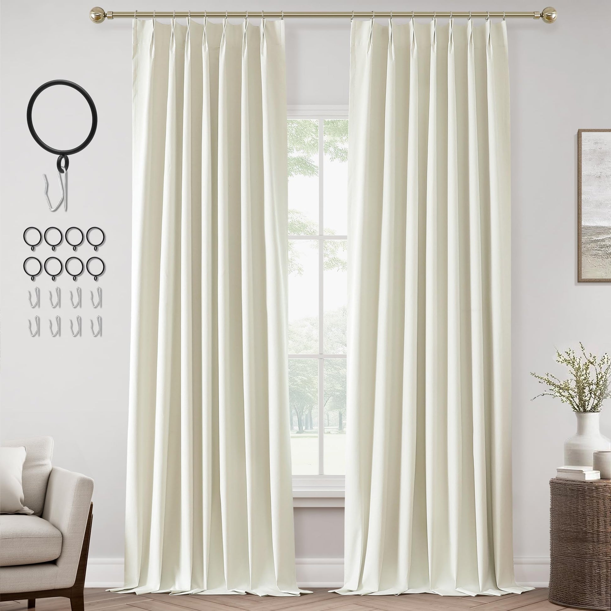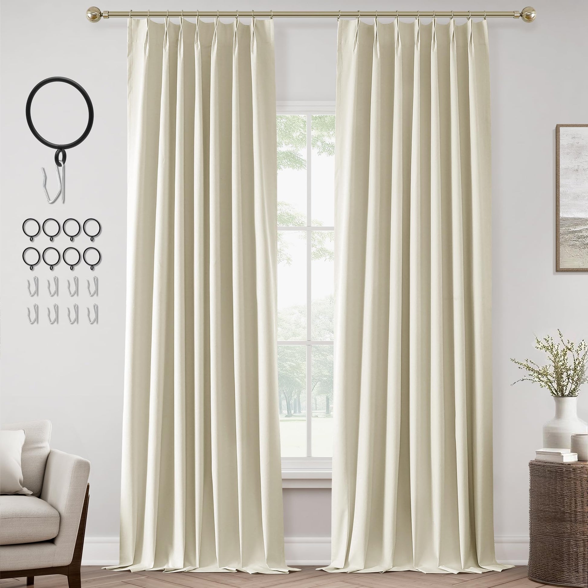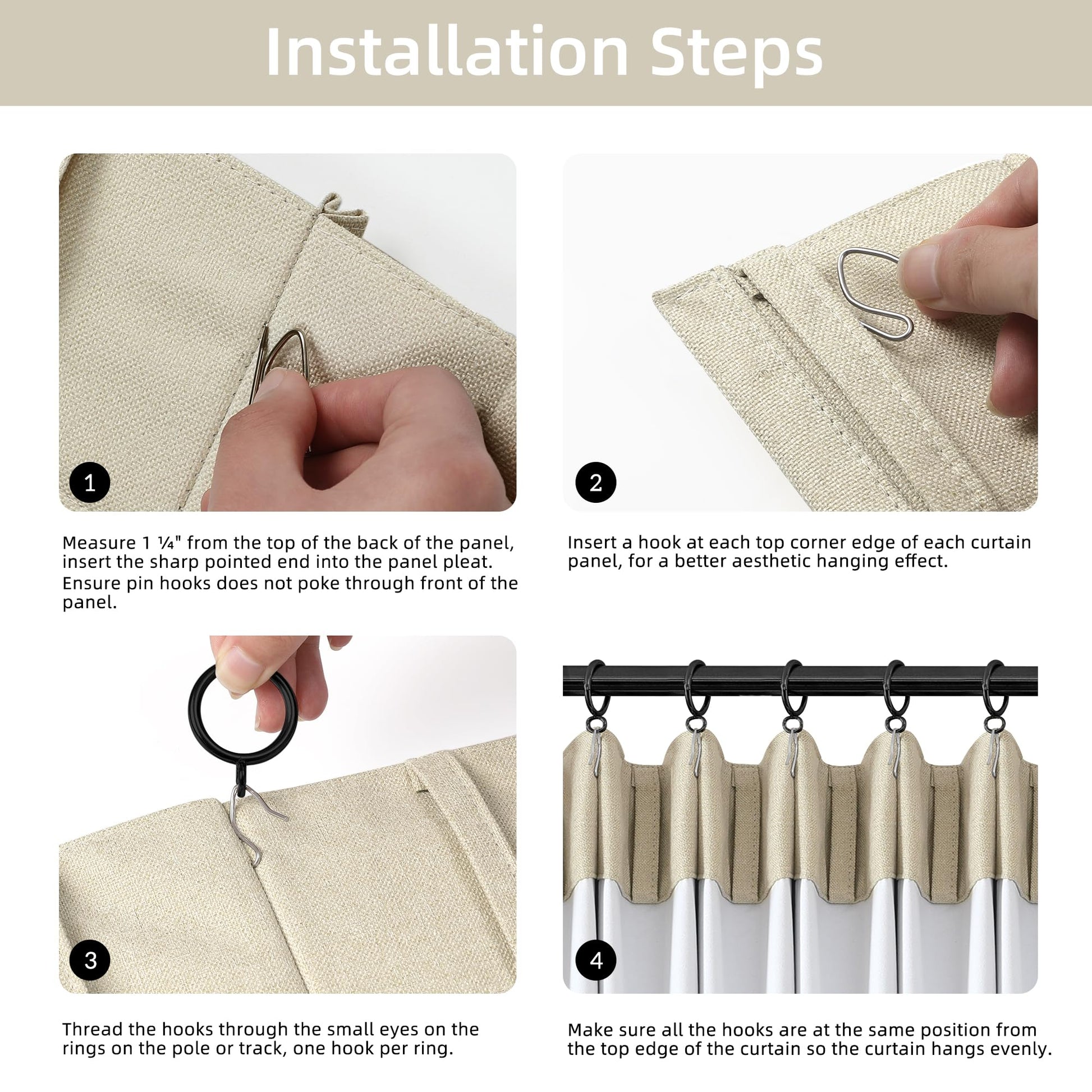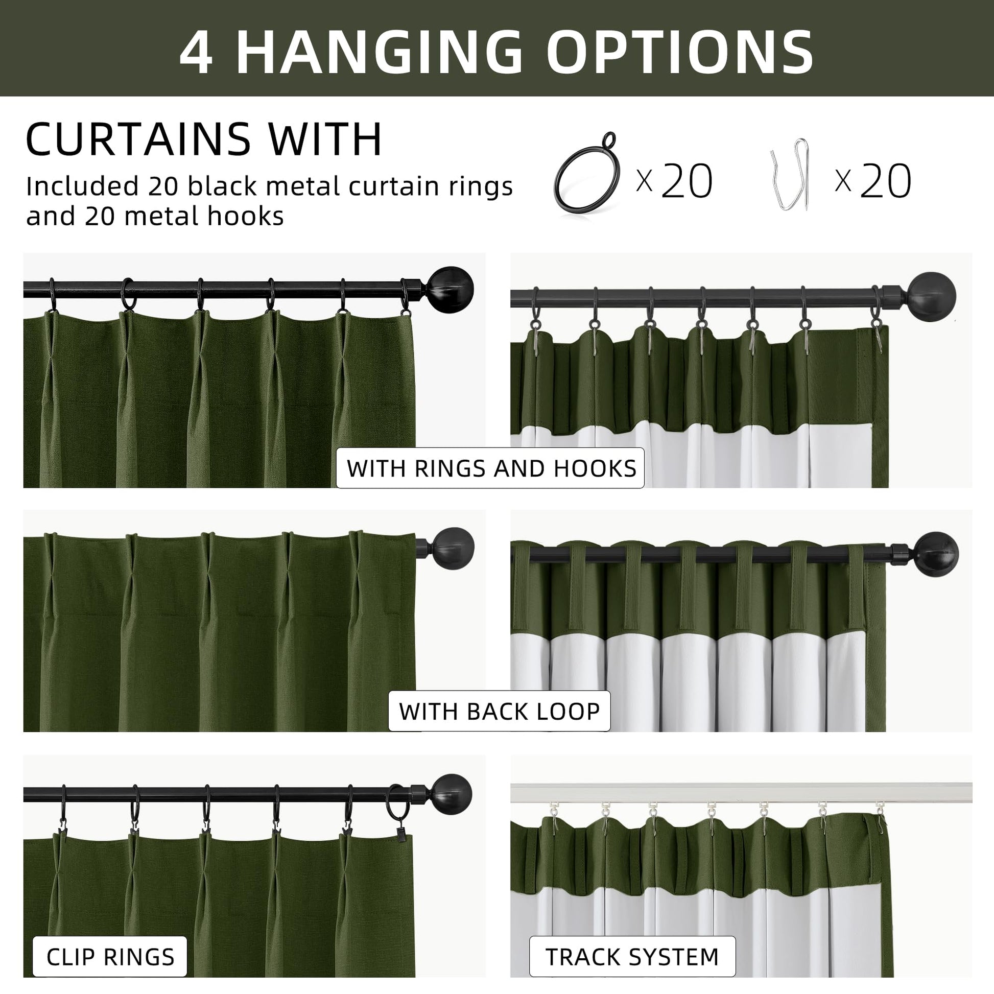 - Natural Linen Texture & Pinch Pleats:Linen blend fabric with permanent pinch pleats for structured folds.Timeless farmhouse elegance with natural drape.