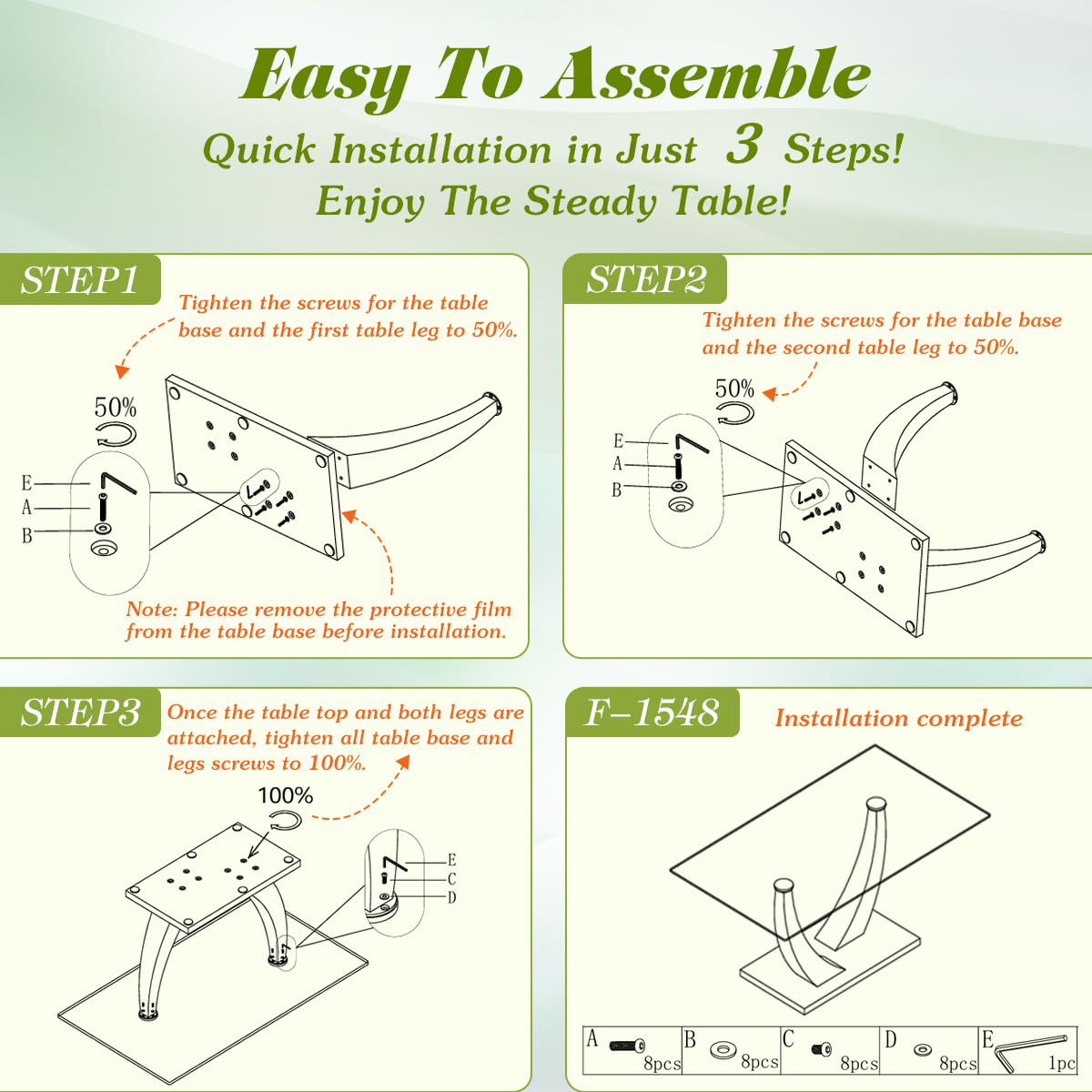 - Easy Assembly, Easy Maintenance: Attach the table top, leg, and base with included screws using detailed instructions, typically requiring only a few minutes. The dining room table is durable, waterproof, and easy to clean; a wet wipe is sufficient for daily care, making spills worry-free