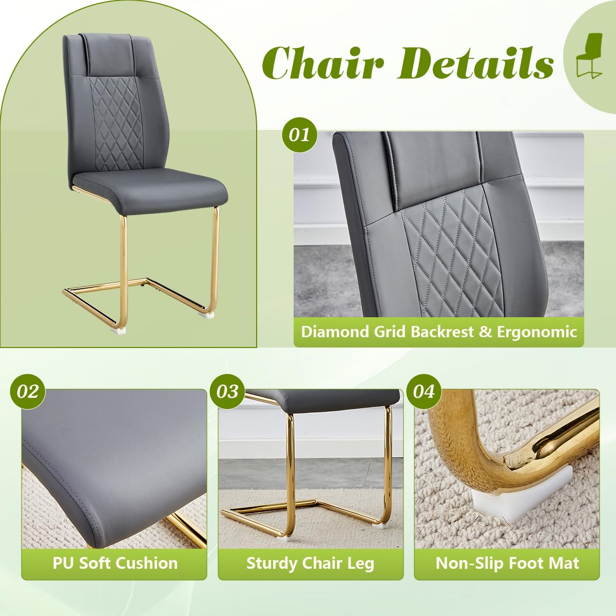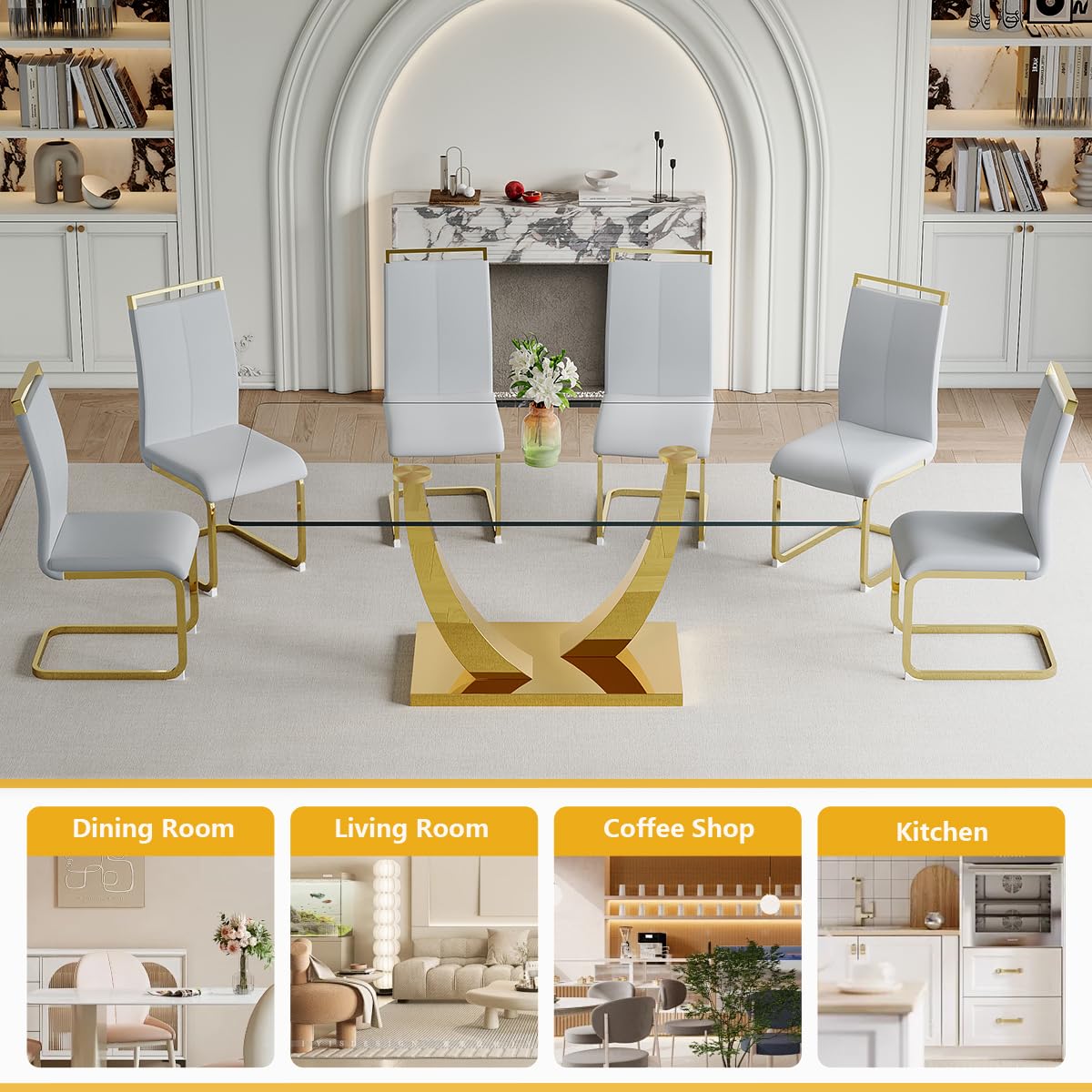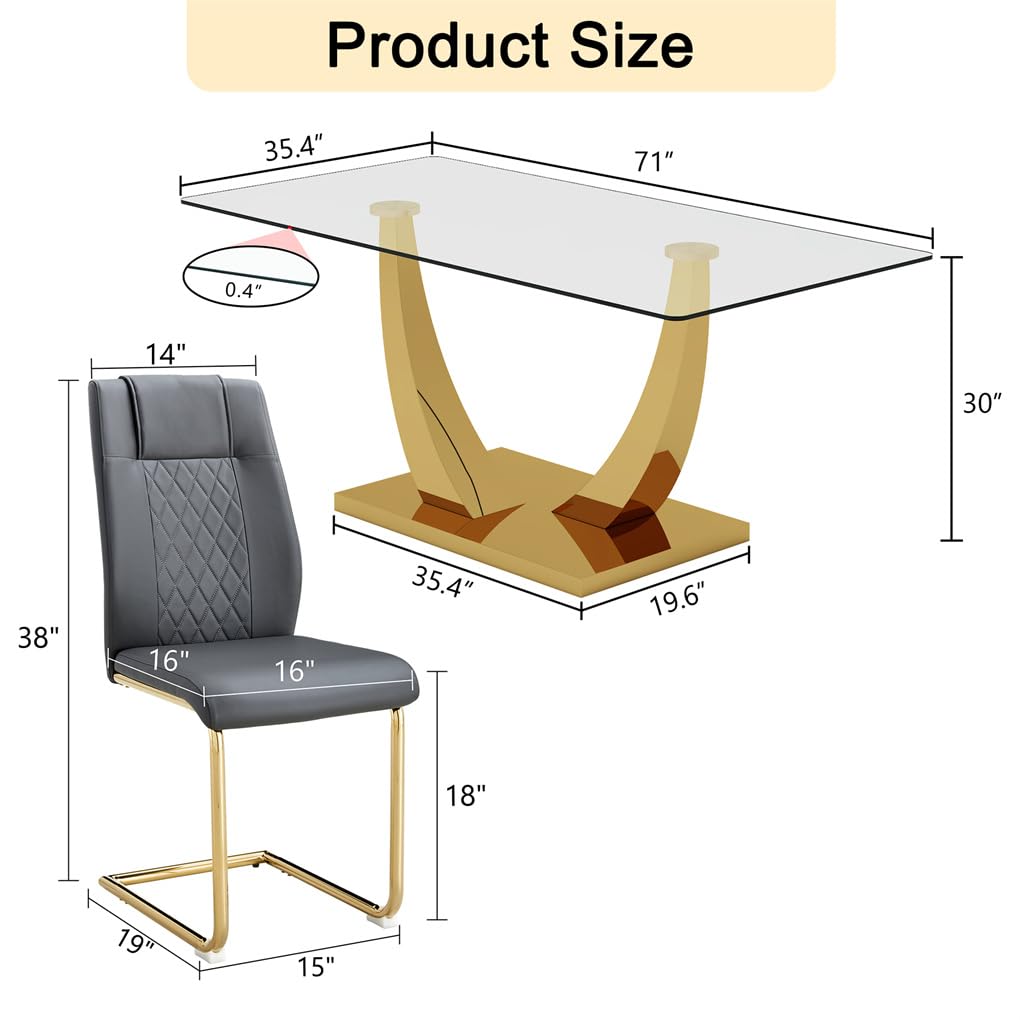 - 63'' Glass Dining Table Set for 4: Our dining set comprises a clear tempered glass table accompanied by 4 PU leather dining chairs. Elevate the overall sense of well-being with this stylish and minimalist ensemble. Designed to comfortably seat four individuals, this kitchen dining table set is an ideal choice for family dinners and gatherings with friends, combining both functionality and aesthetic appeal