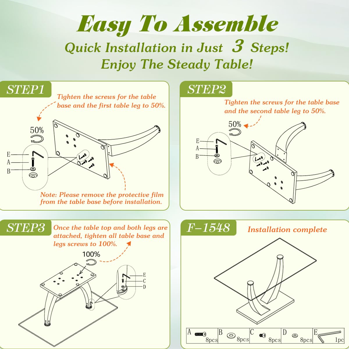 - Easy Assembly, Easy Maintenance: Attach the table top, leg, and base with included screws using detailed instructions, typically requiring only a few minutes. The dining table is durable, waterproof, and easy to clean; a wet wipe is sufficient for daily care, making spills worry-free