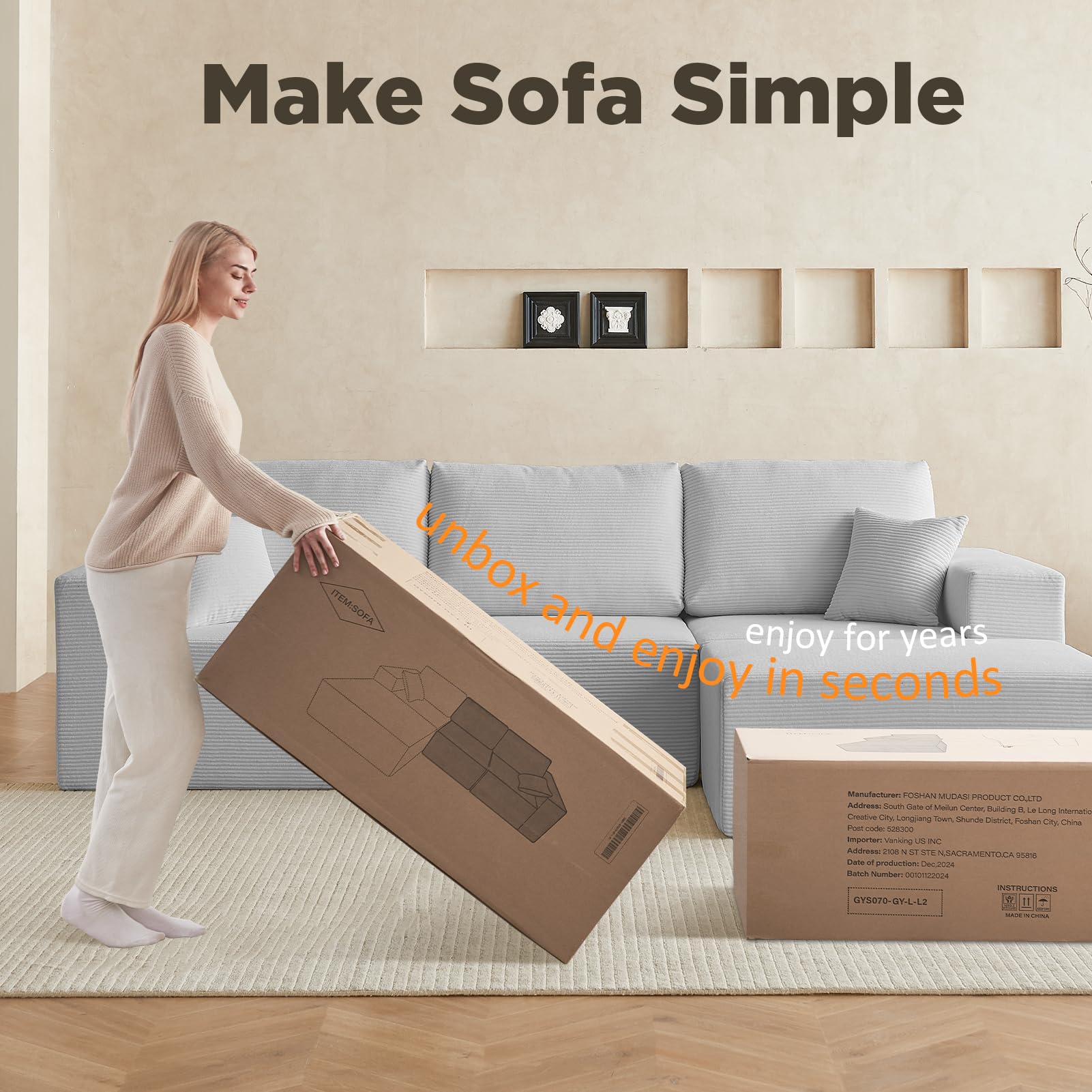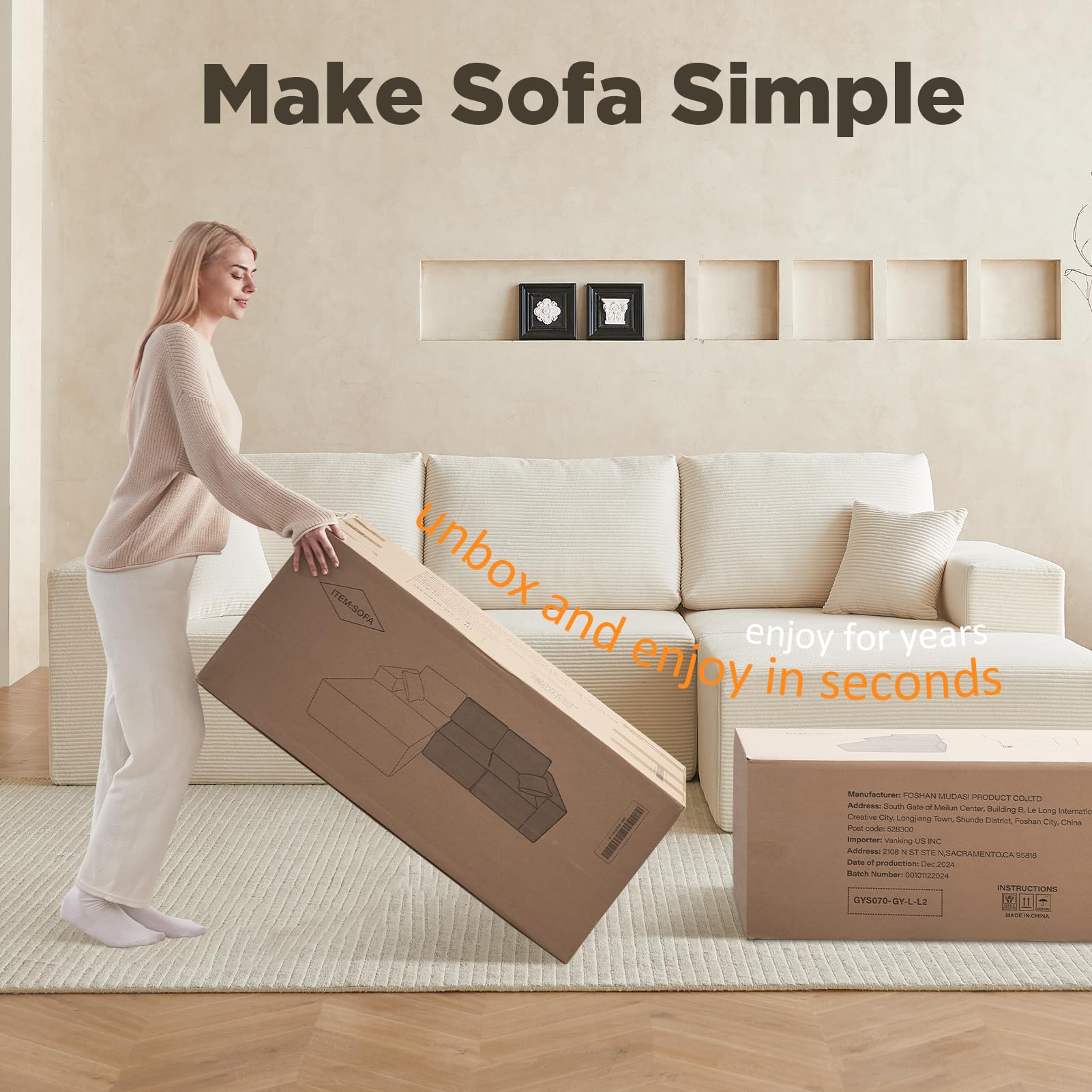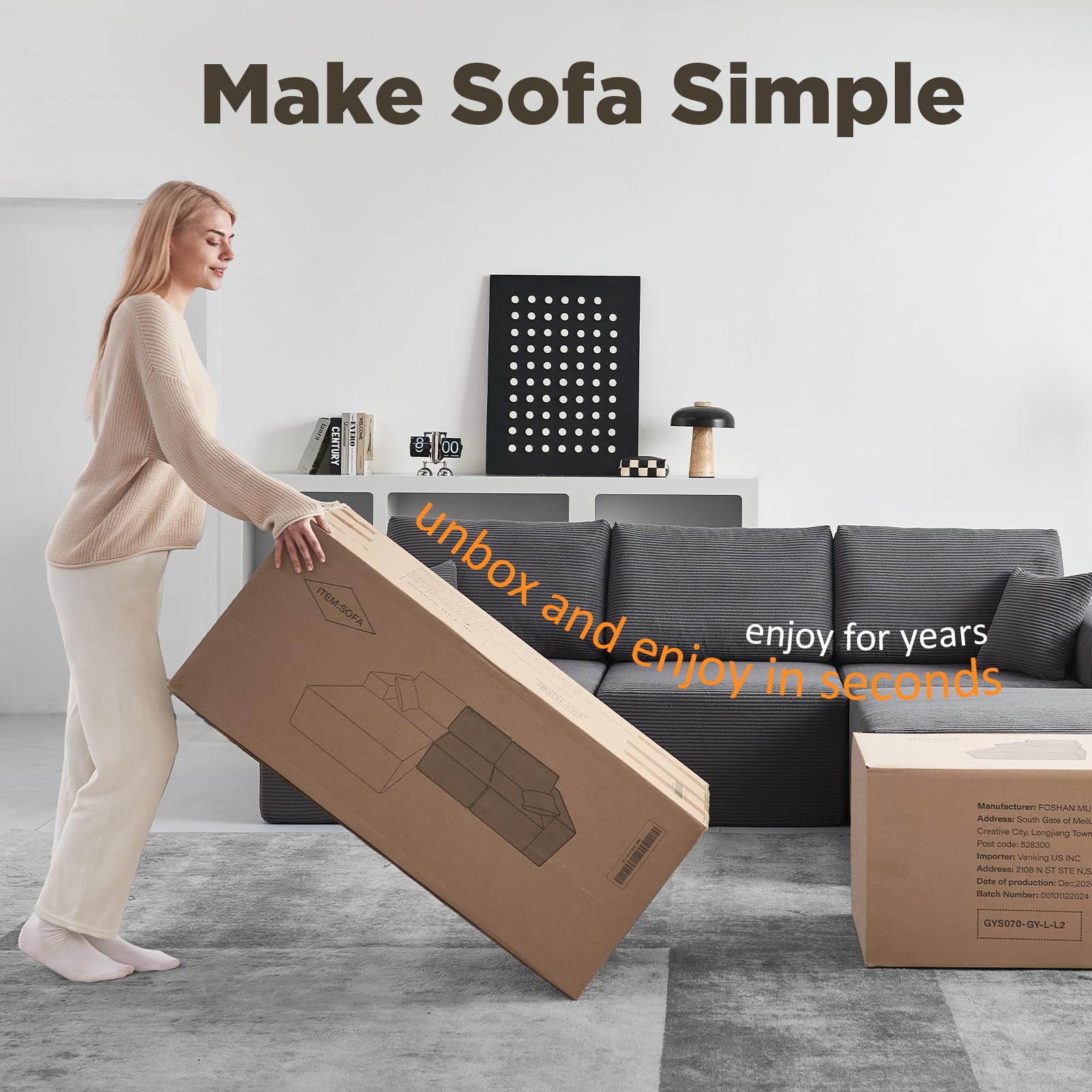 - 【No Assembly Sectional Sofa】Arrives pre-assembled, no tools needed. Just unbox, fluff cushions, and watch it expand in 72 hours—perfect for renters and quick living room upgrades