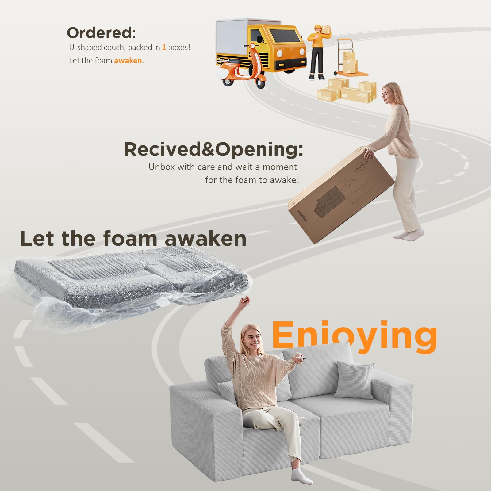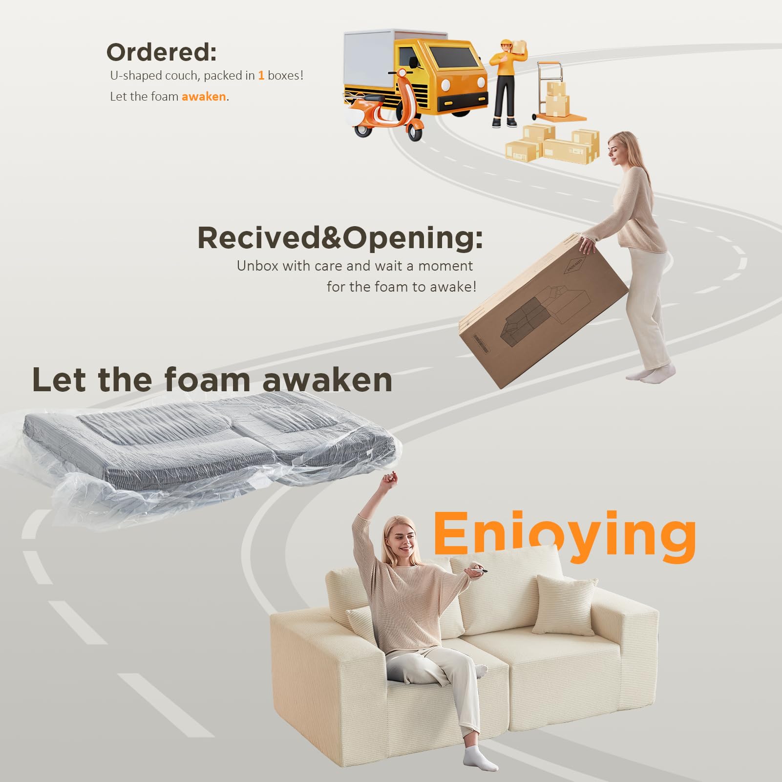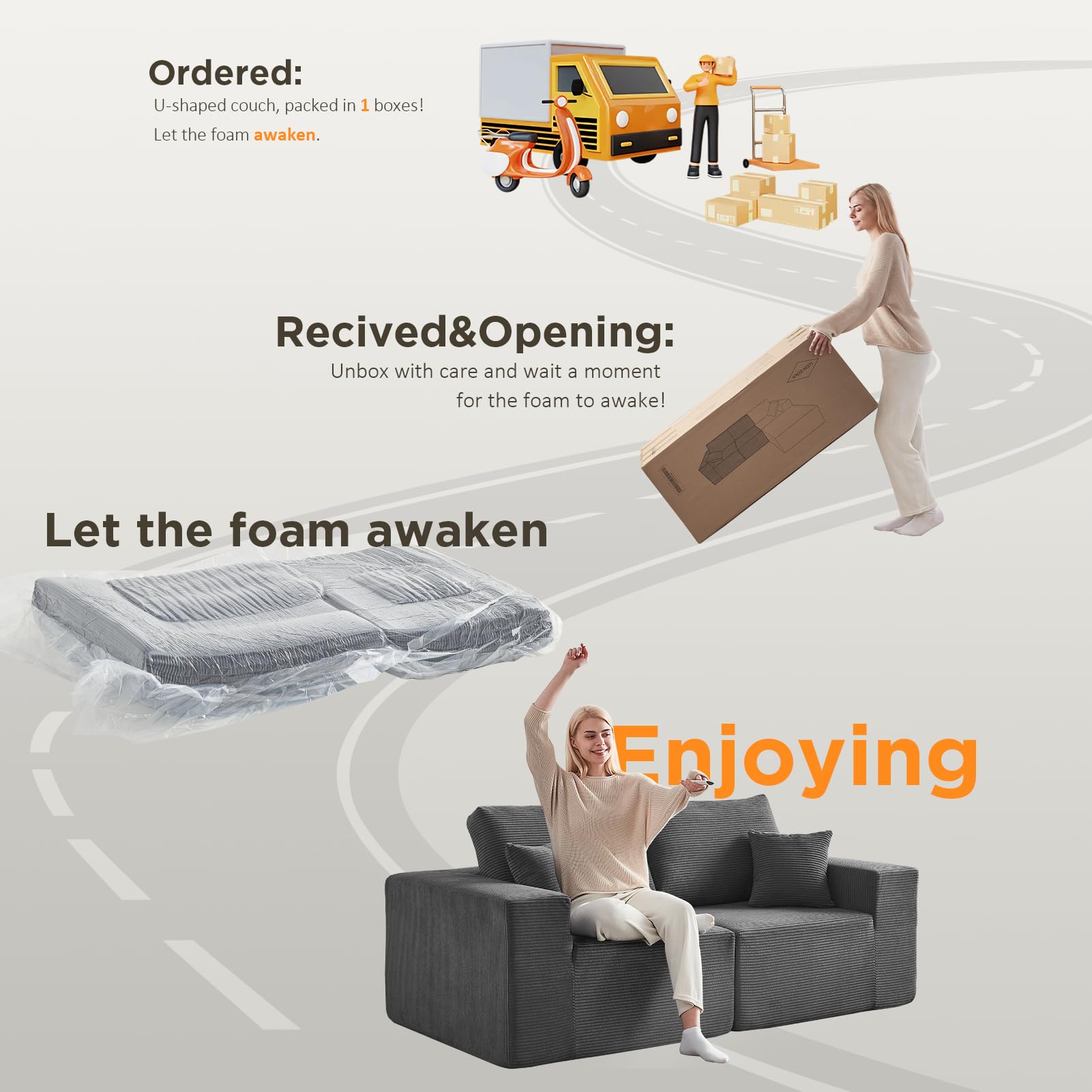 - 【No Assembly Sectional Sofa】Arrives pre-assembled, no tools needed. Just unbox, fluff cushions, and watch it expand in 72 hours—perfect for renters and quick living room upgrades