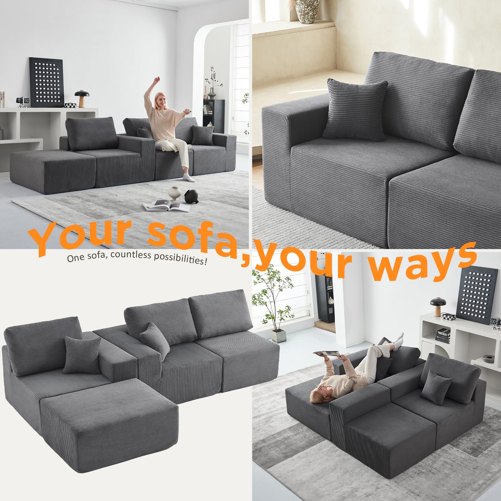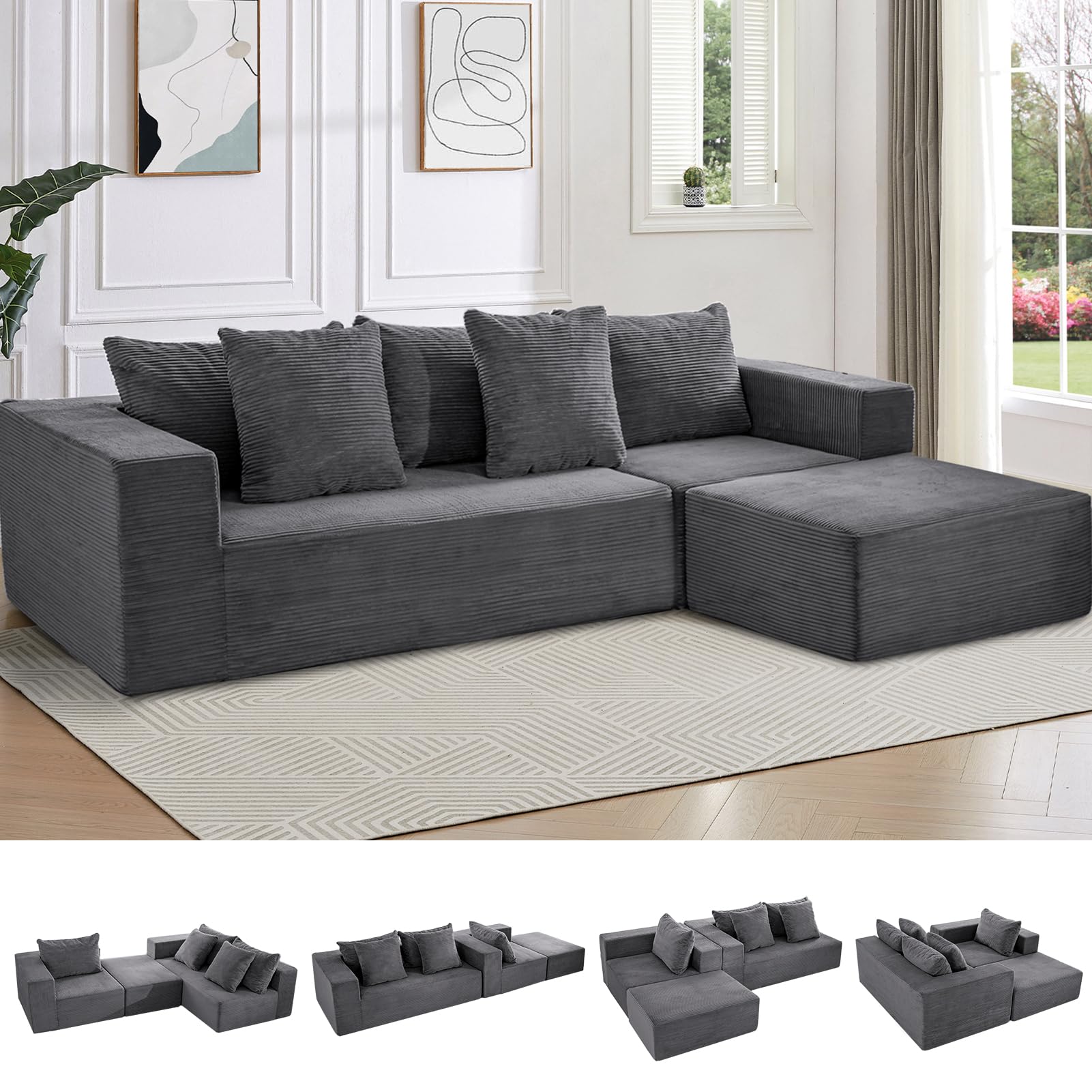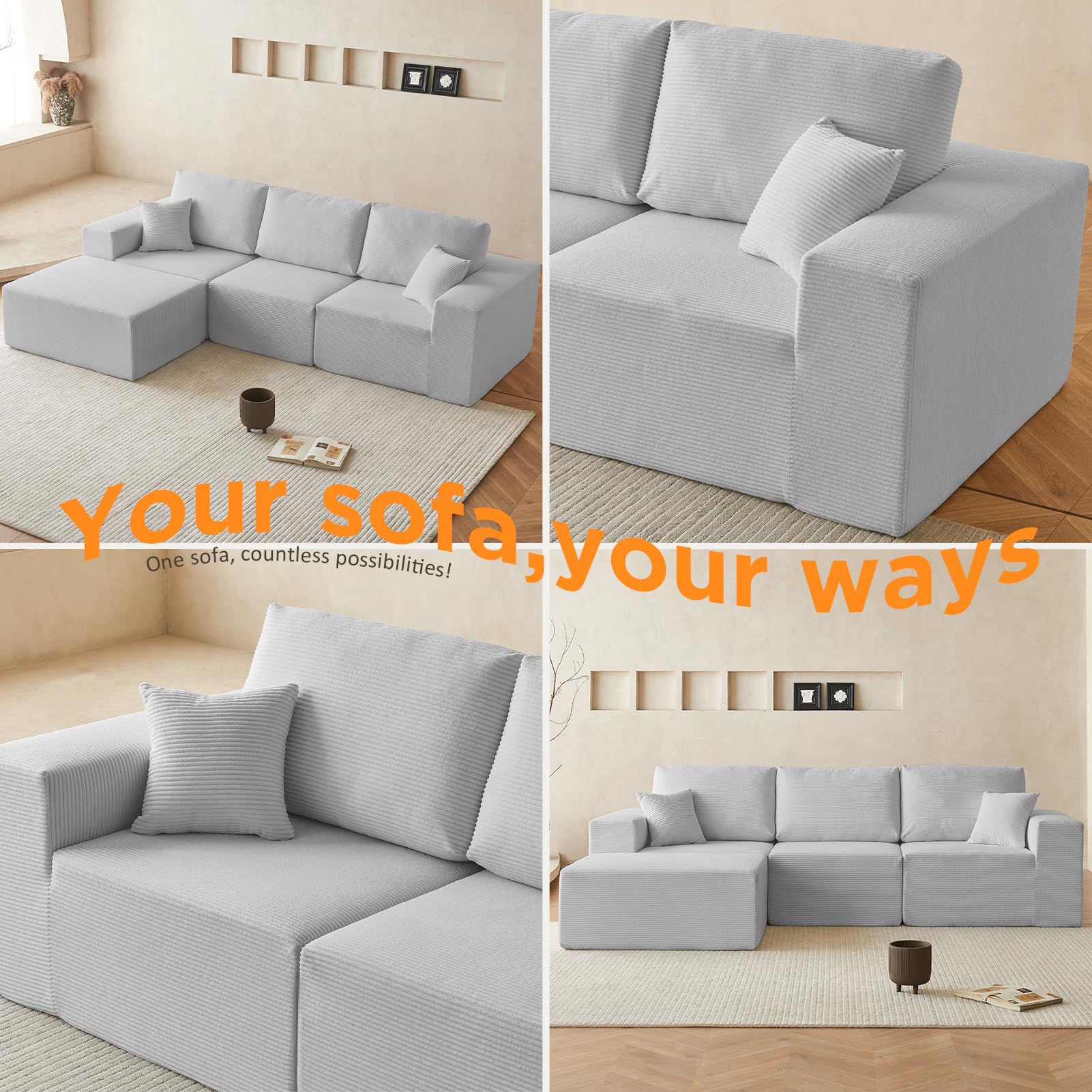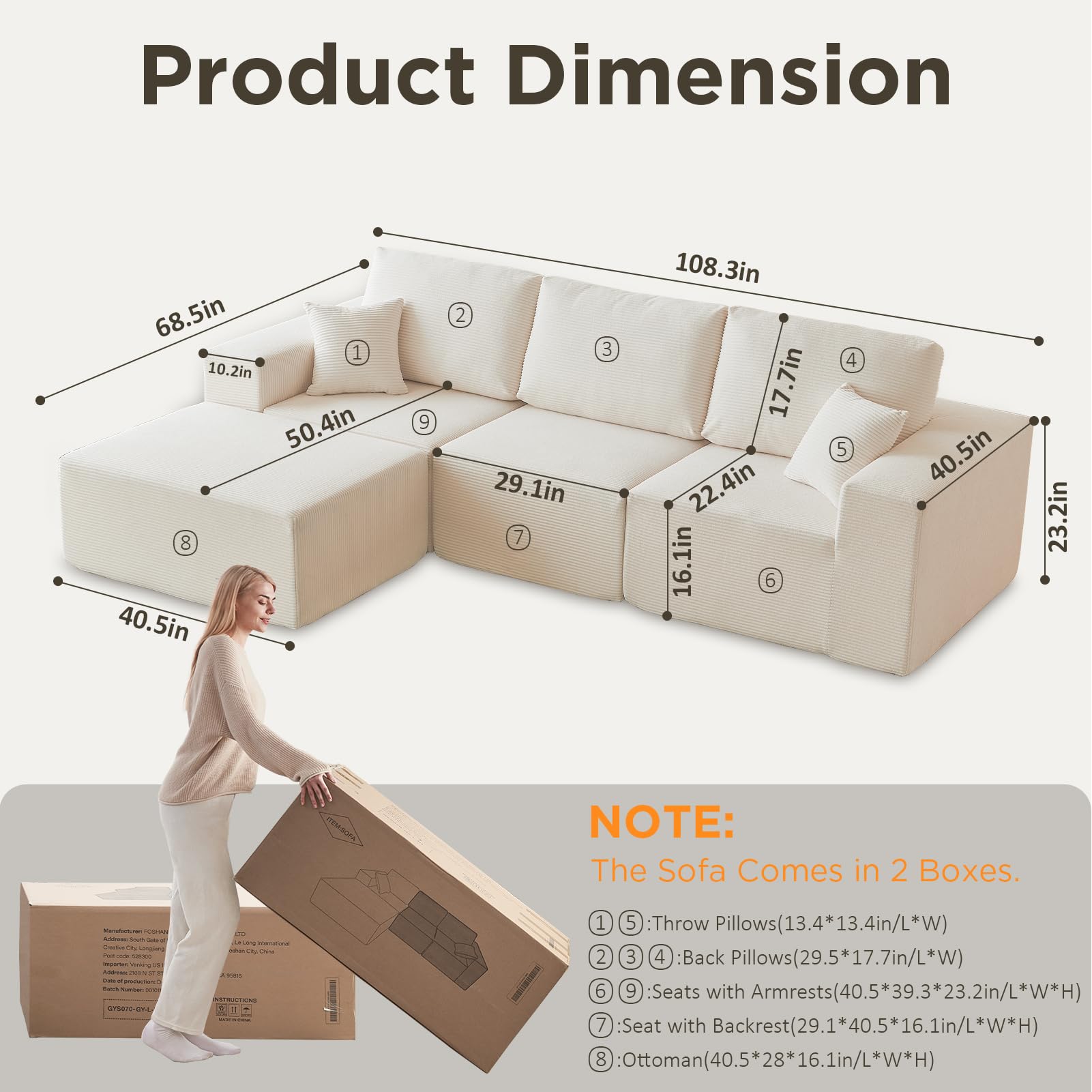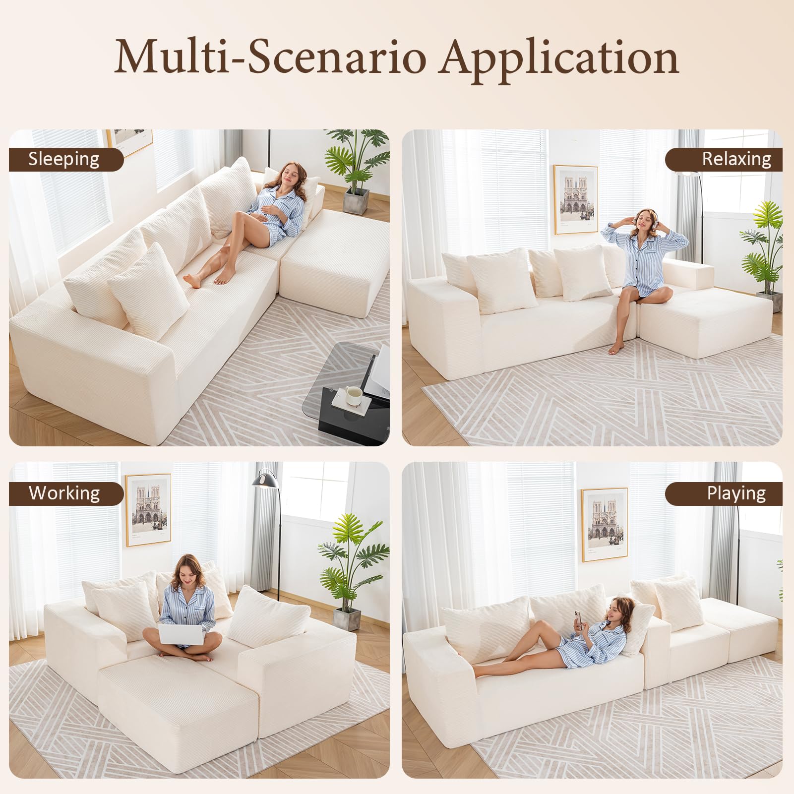 - 【Modular L-Shaped Cloud Couch】108" L-shaped sectional for versatile layouts. Works as couch, sofa, or modular sectional, maximizing corners and offering flexible standalone or extended setups