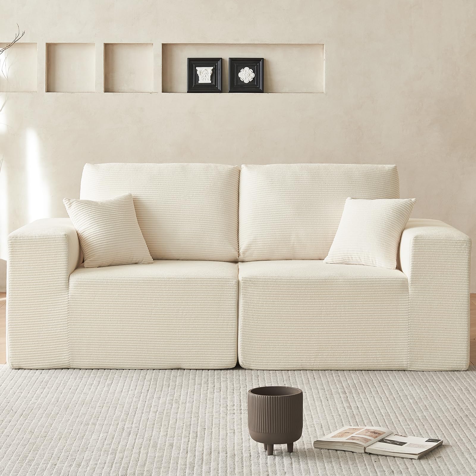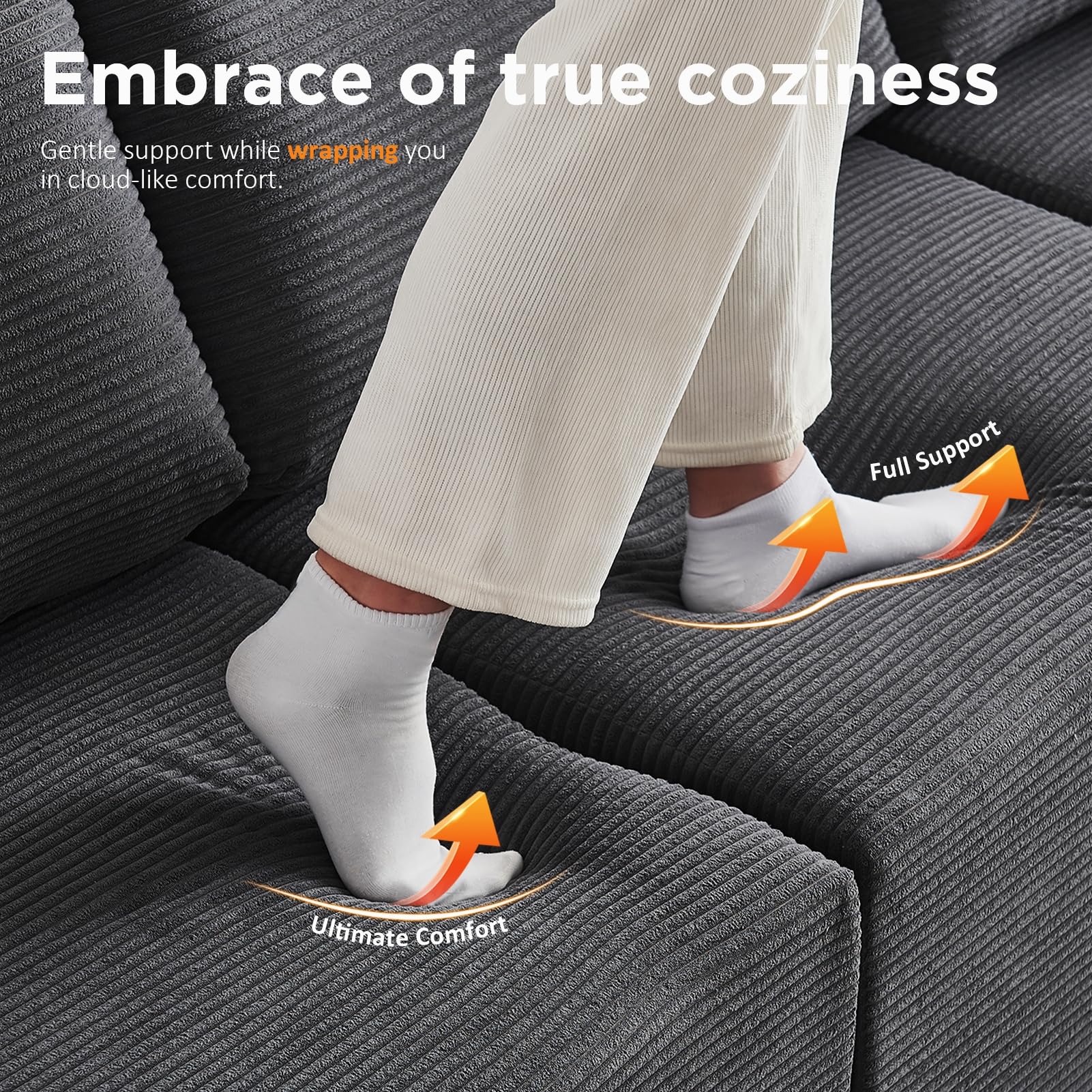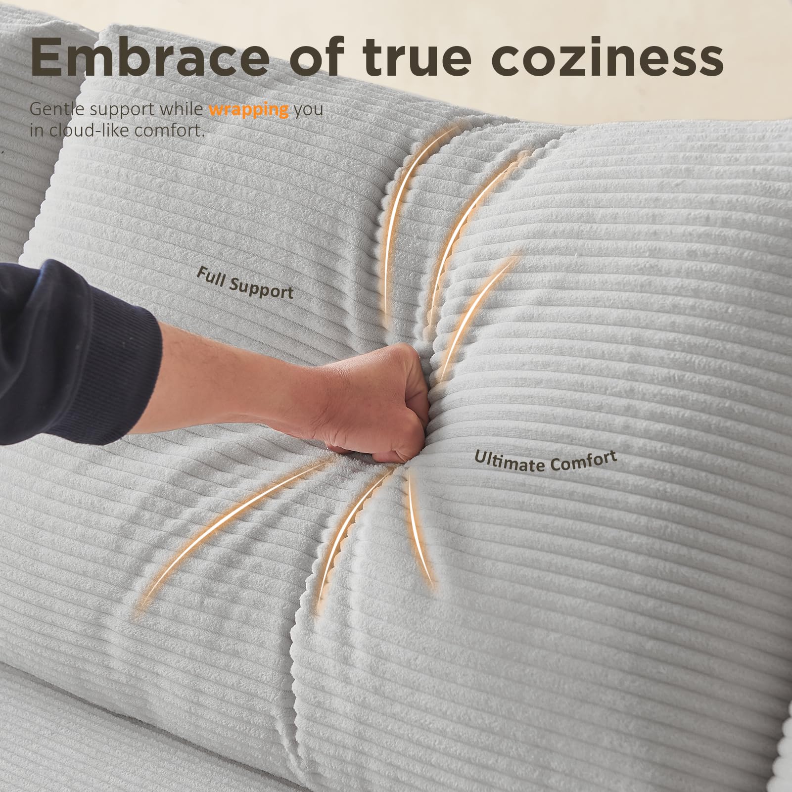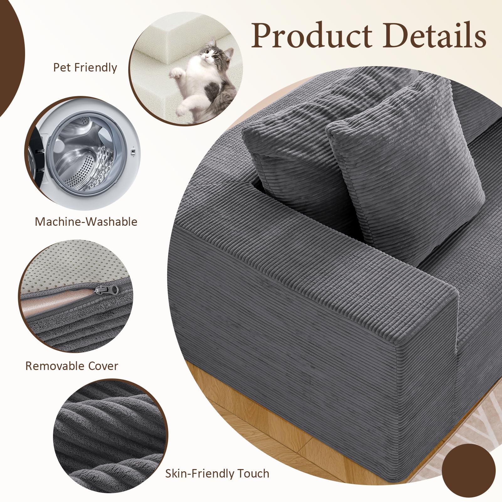 - 【Plush Corduroy Cloud Sofa】Soft, durable ribbed corduroy resists pet hair & spills. High-resilience foam keeps shape, providing cloud-like support for movies or gatherings