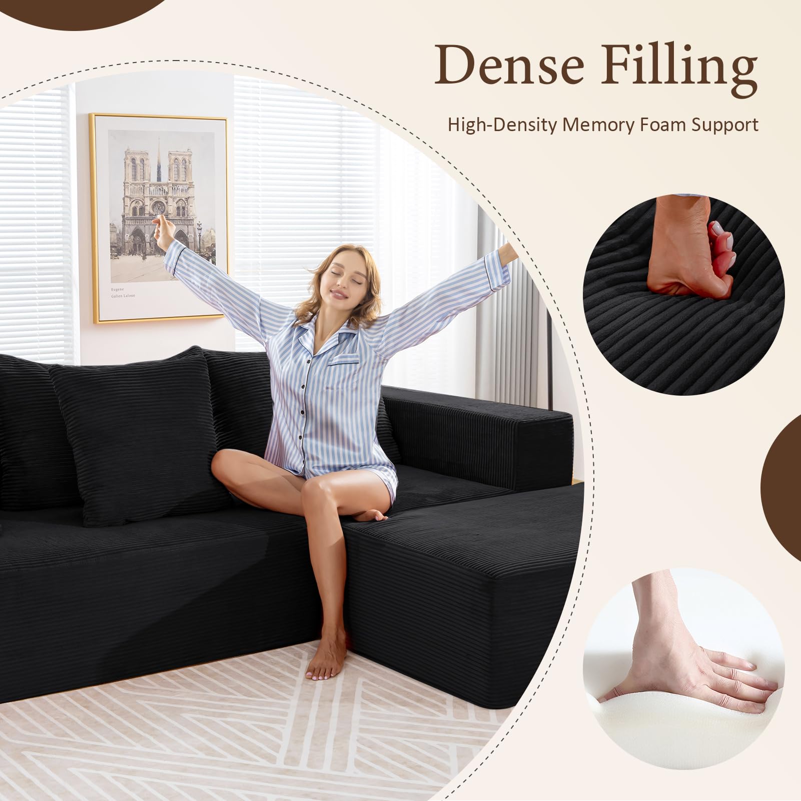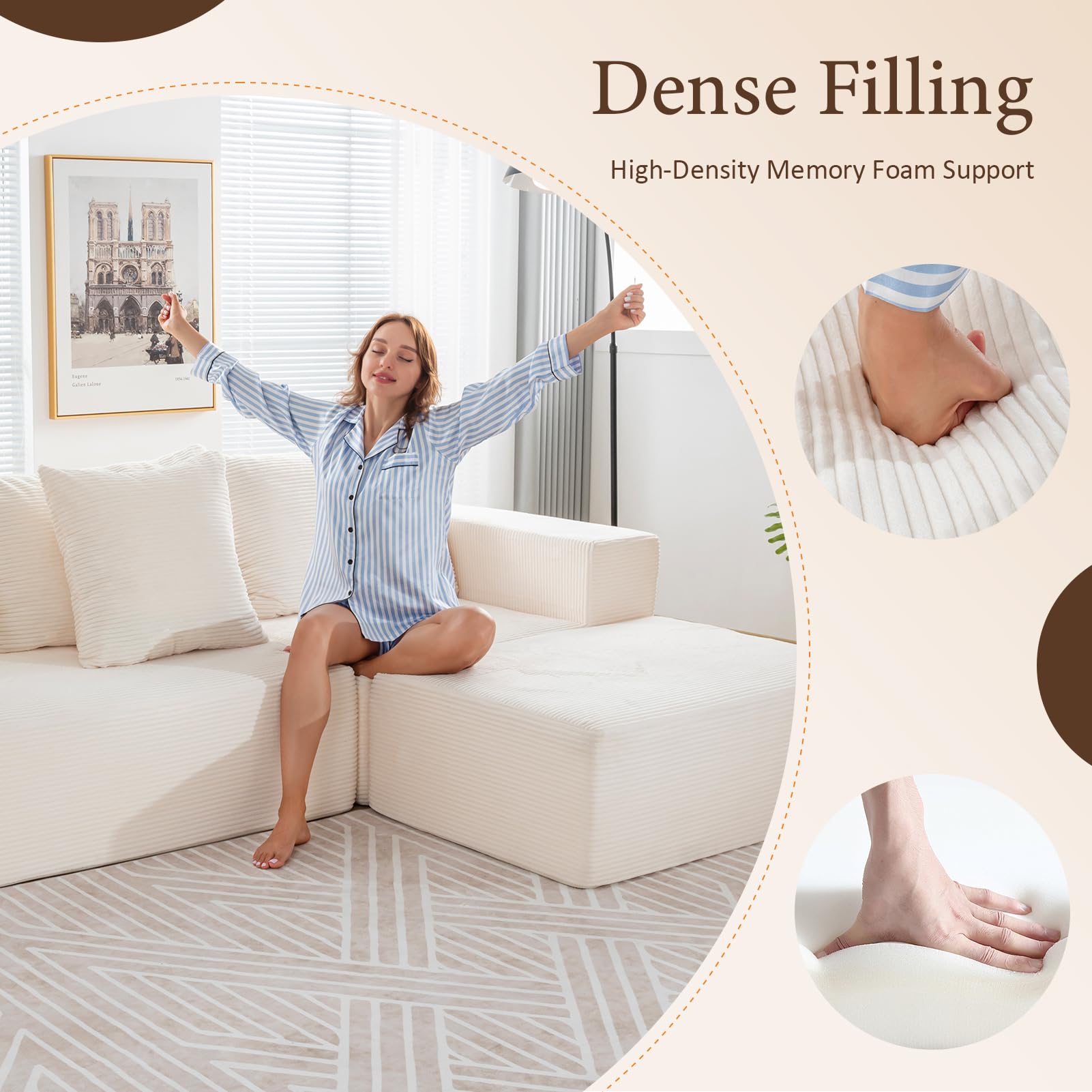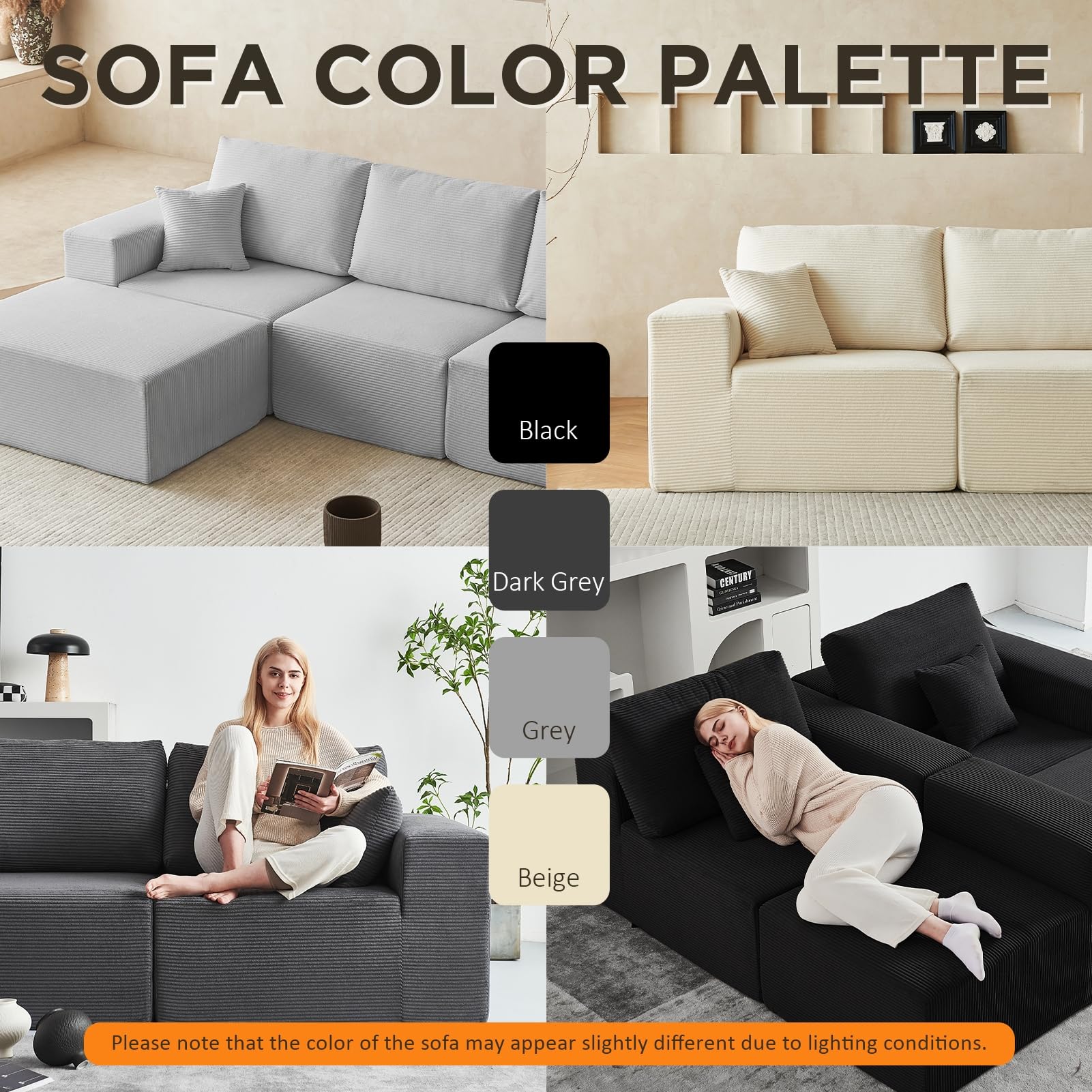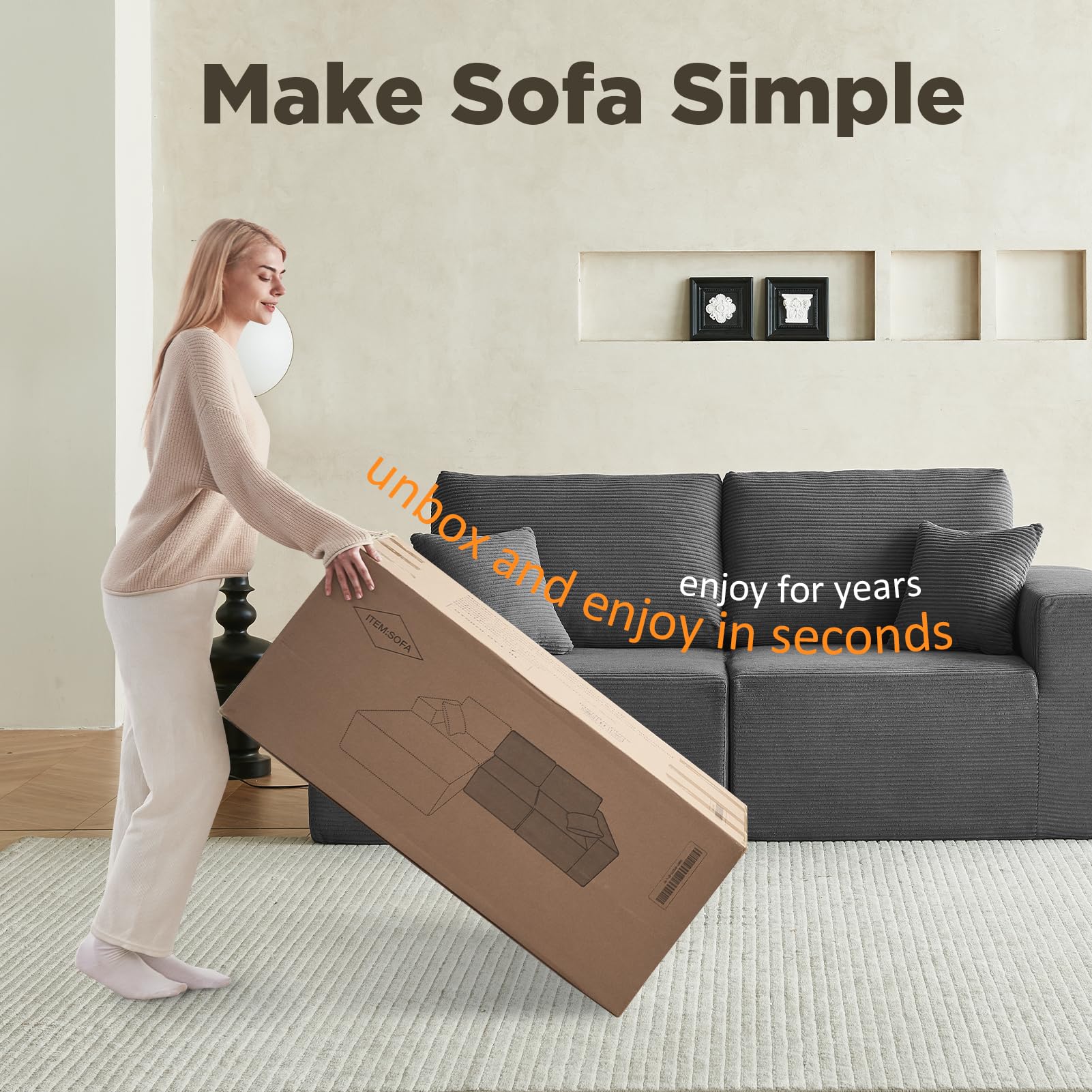 - 【Plush Corduroy Cloud Sofa】Soft, durable ribbed corduroy resists pet hair & spills. High-resilience foam keeps shape, providing cloud-like support for movies or gatherings
