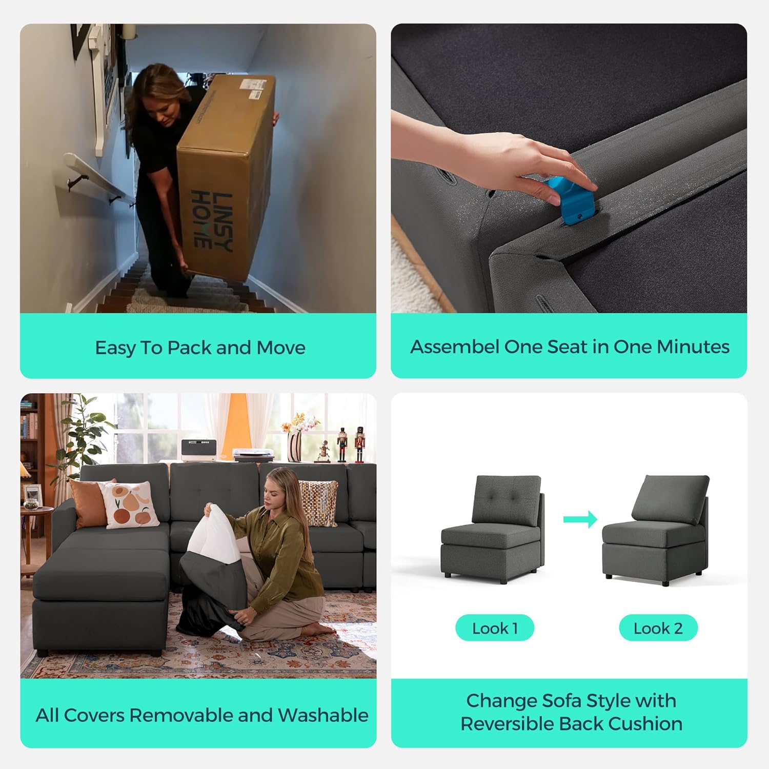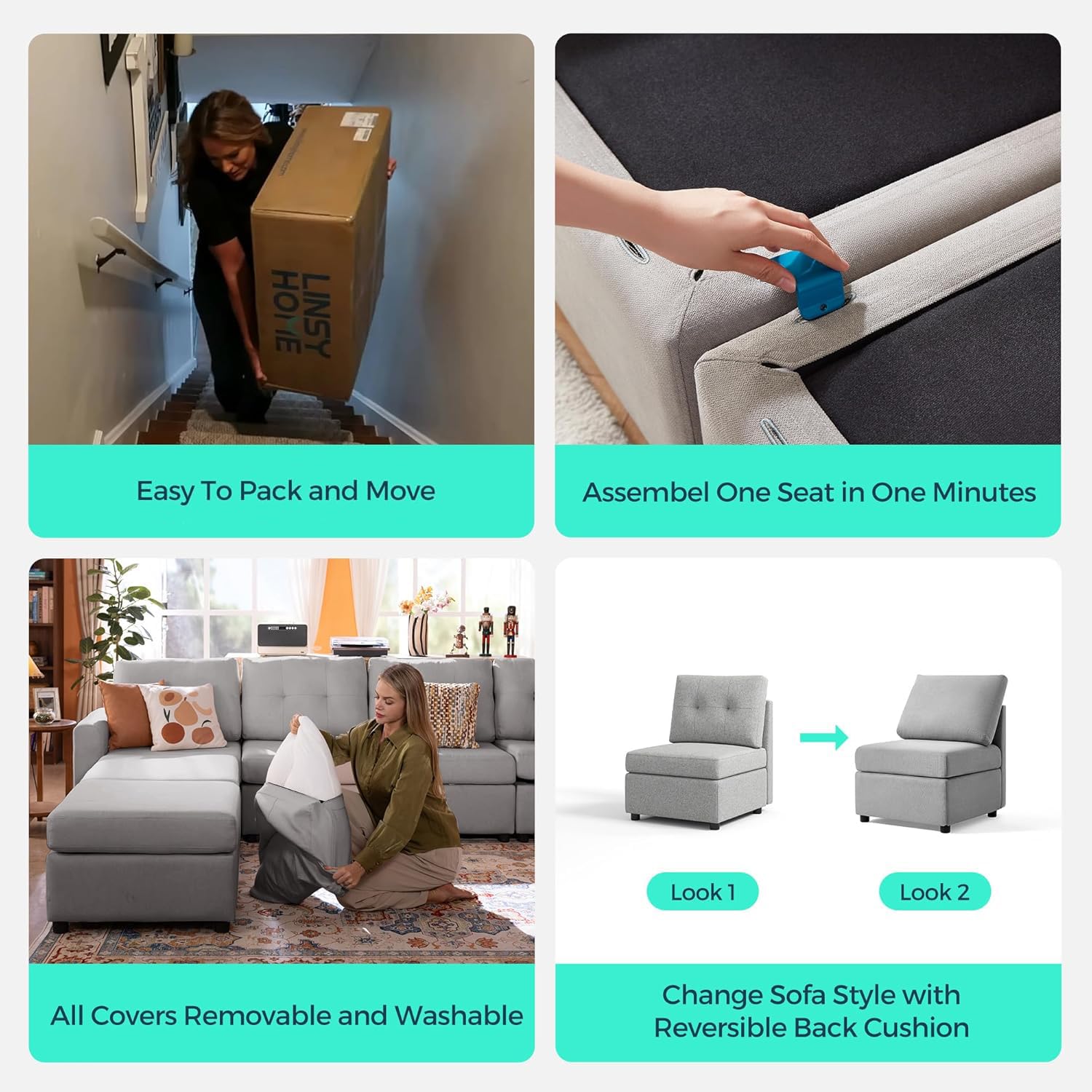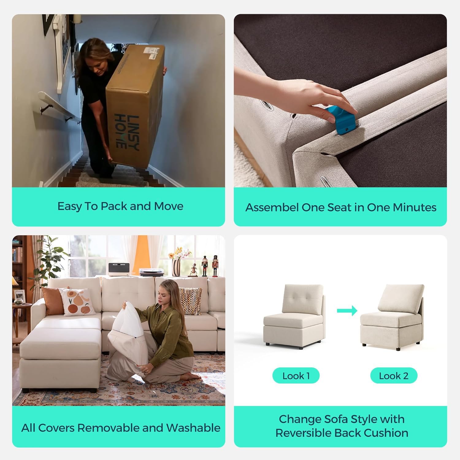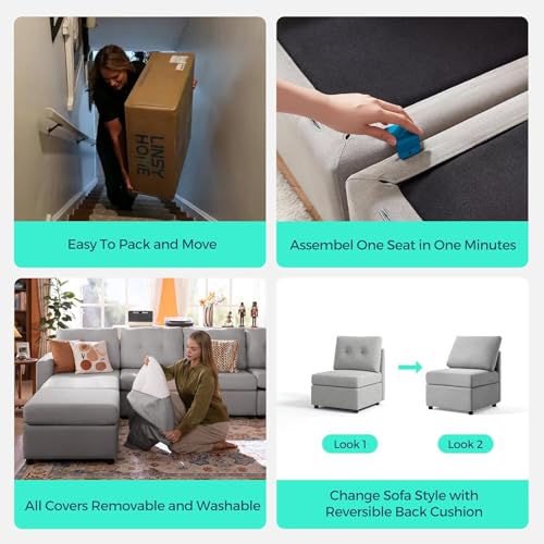 - Modular Sectional Design: LINSY HOME’s modular design allows each piece to be detached and repositioned effortlessly. Customize your sofa to suit any room layout or occasion, unlocking endless configuration options tailored to your space and lifestyle