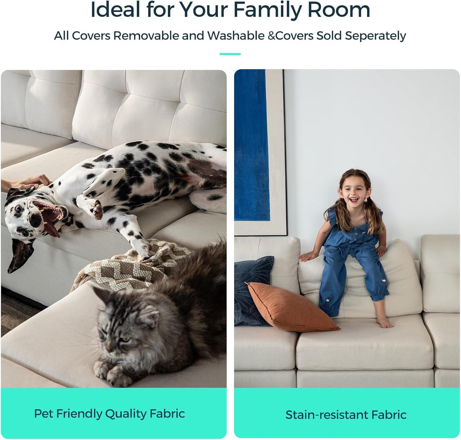 - Generously Deep Seats: With a length and width of 27.5” for each seat, our sectional couch offers a deeper and more luxurious seating experience than other sofas by giving you more room to stretch out your arms and legs