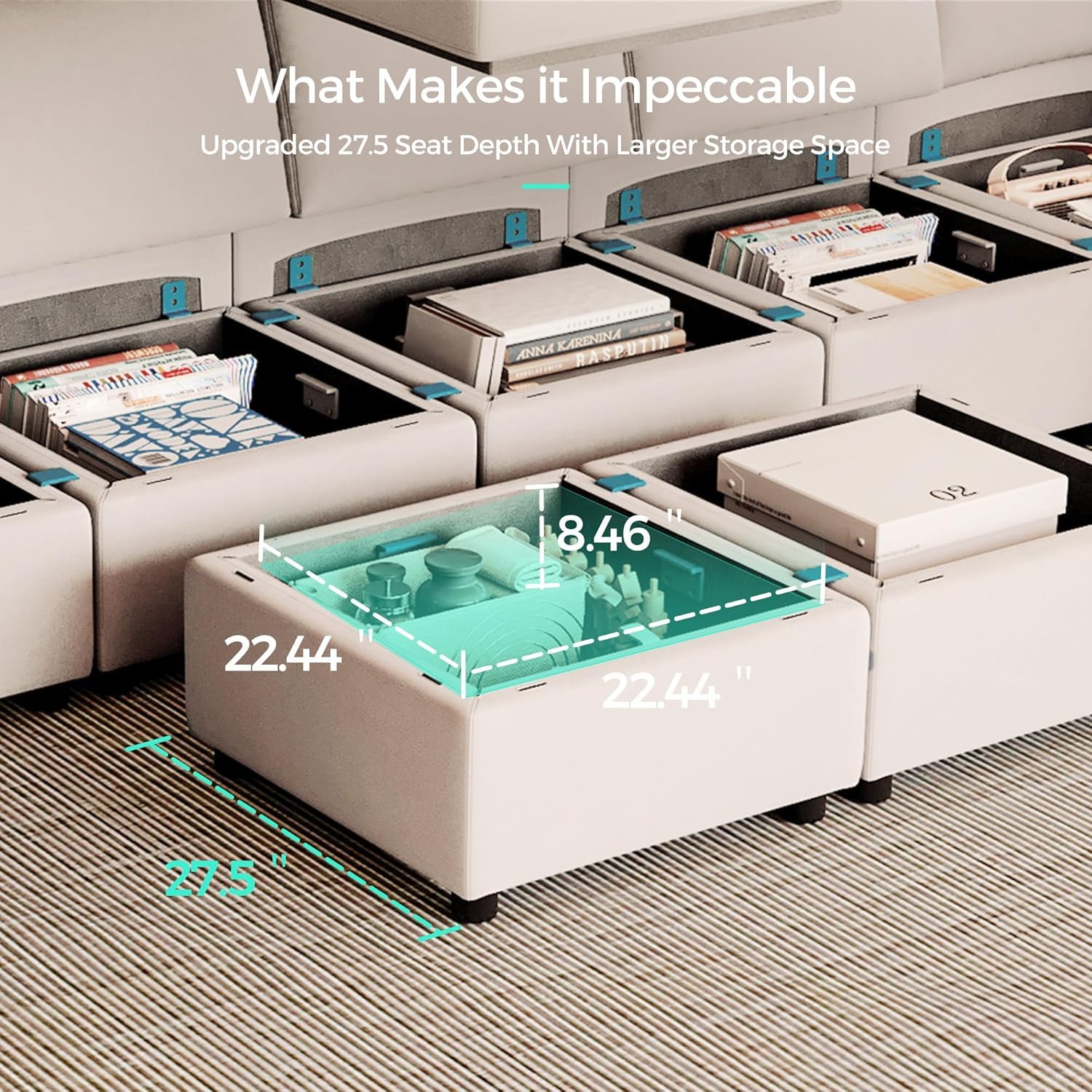 - Ample Storage Space: Each seat and ottoman features spacious under-seat storage, ideal for storing everyday items. With the LINSY HOME sofa in your living space, maintaining a clean and organized home has never been easier