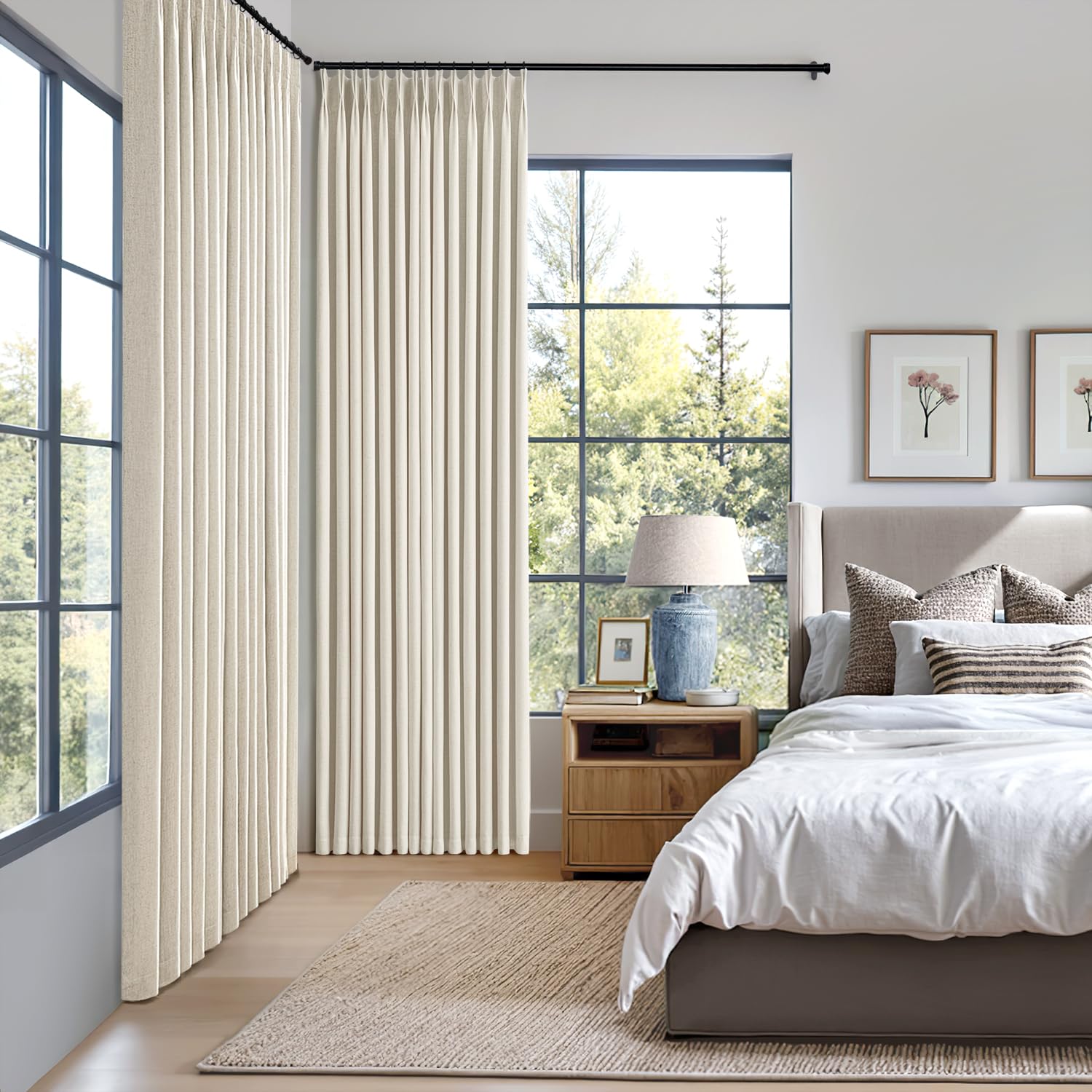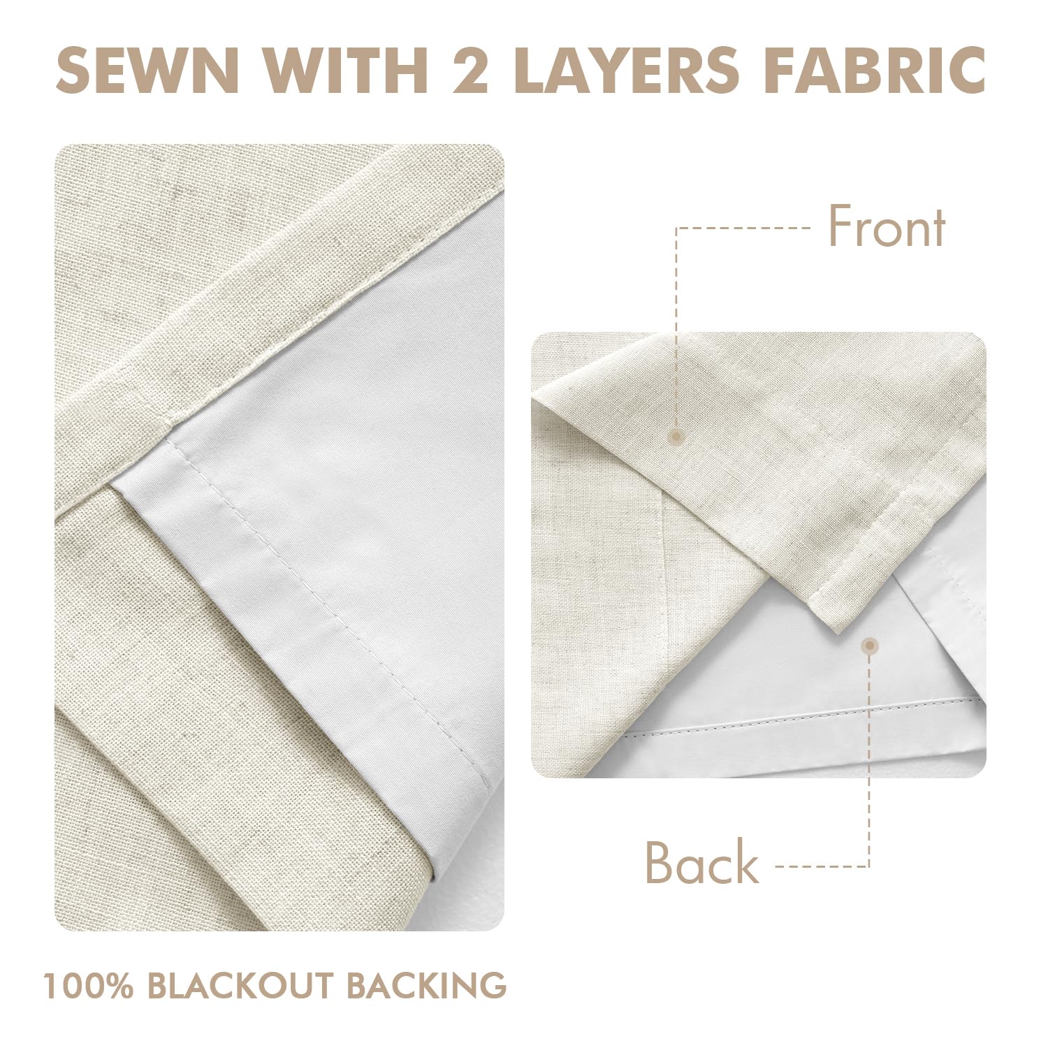 - Dual-Layer 100% Blackout Curtains: Crafted with dual-layer construction, these curtains combine a soft high-density linen outer layer and thick white blackout lining. The inner layer blocks 100% sunlight/UV rays, provides thermal insulation (summer/winter comfort), and reduces noise. Enhances privacy while regulating temperature year-round. Natural linen texture delivers organic warmth and sophistication, creating a serene yet elegant ambiance through tactile depth