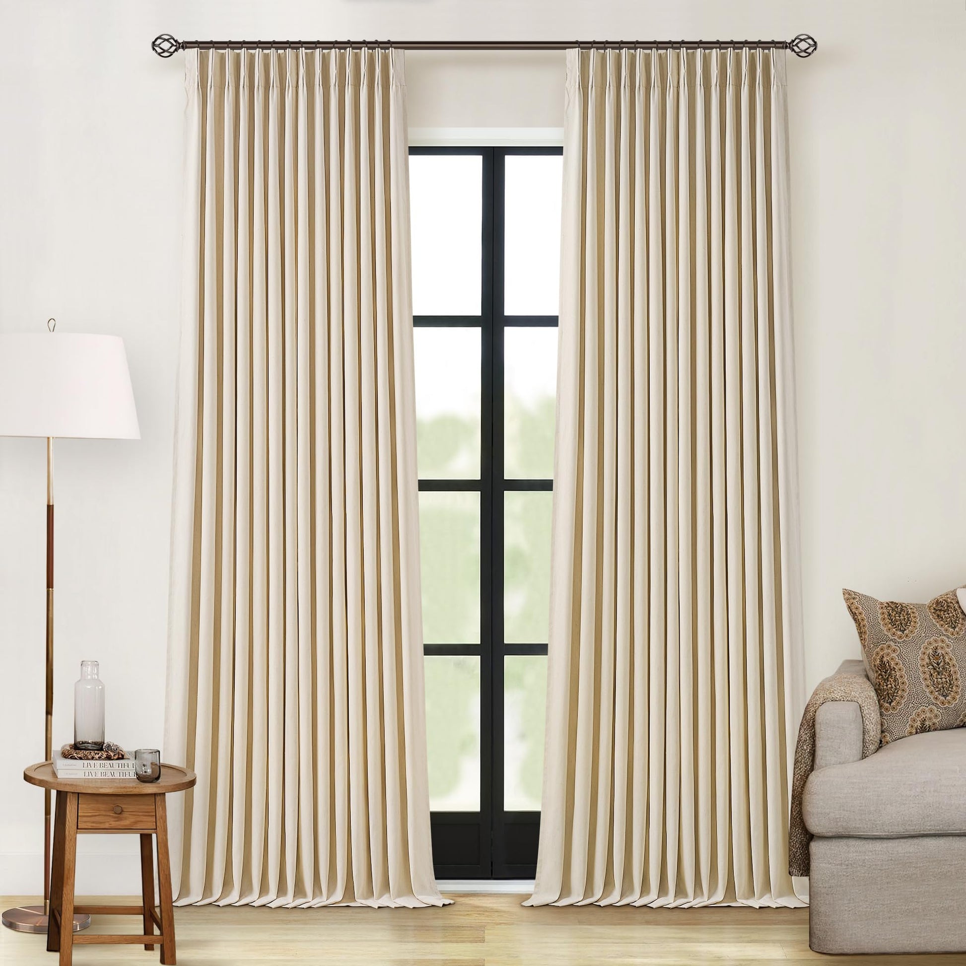 - Double Layer Design 100% Blackout Curtains: Our pinch pleated blackout curtains crafted from linen blend fabric and 100% blackout curtain liner, combining the softness of linen with the practicality of blackout lining. The pairing of these two layers creates a sophisticated look, adding texture to the window treatment. Provide you a complete private and personal space for a sweet sleep or rest