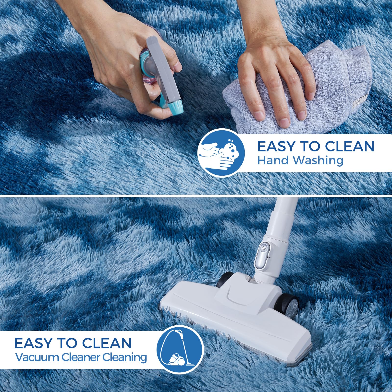 - Easy To Clean - We recommend that you can directly shake off the impurities on the surface of the shaggy rug or use a vacuum cleaner for daily cleaning. For deep stains, you can choose to wash by hand . After cleaning, place it in a ventilated place to air dry. Note: Vacuum packed, please lay flat and will fluff up back in 2-3 days.
