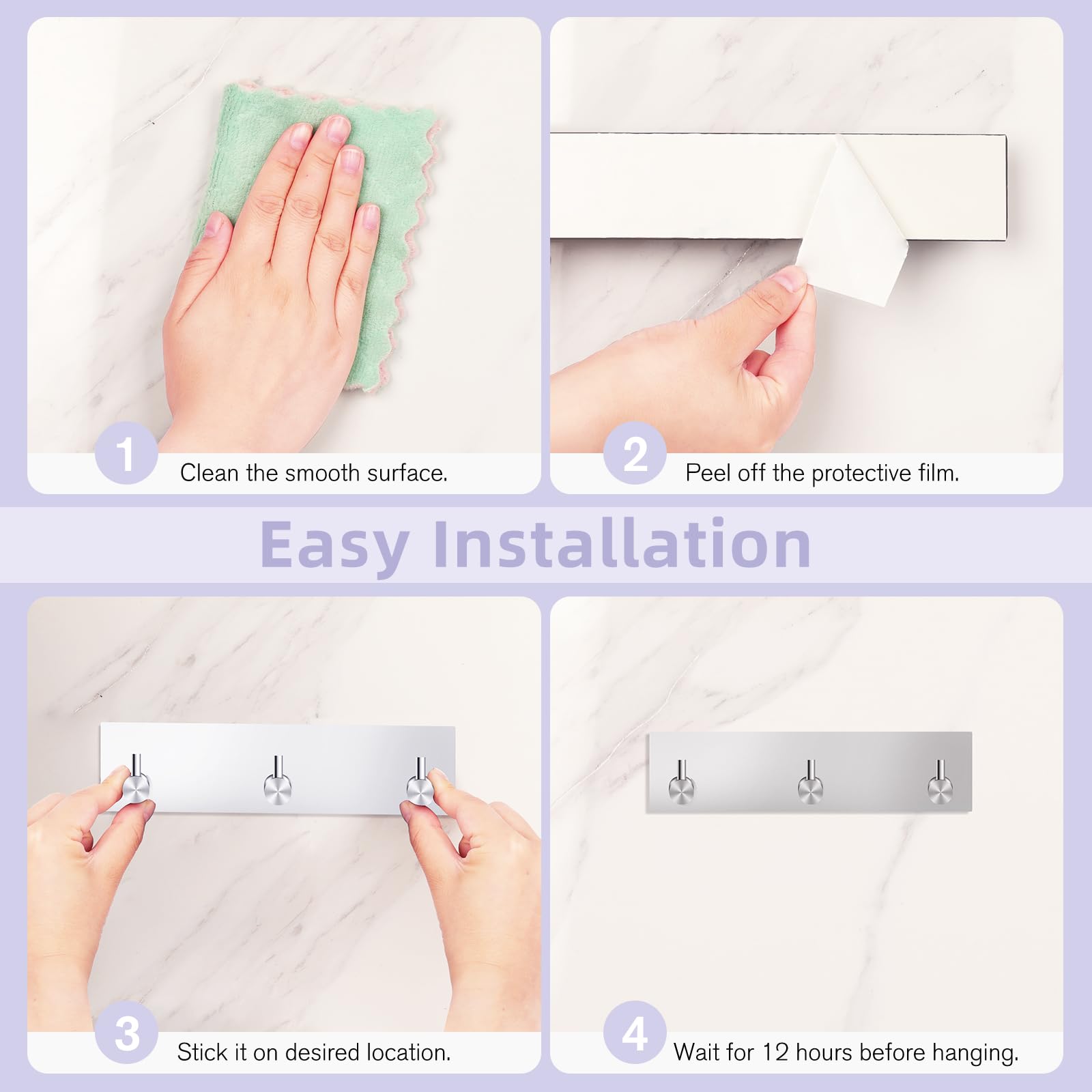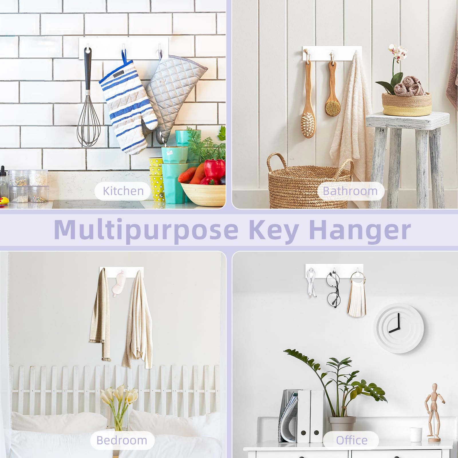 - Easy Installation: No drills, no screws, installation is as easy as peel and stick; set the key hanger level on the exact location and press it firmly, adheres securely to the wall; saves much nails and installation time; comes with an extra adhesive strip in case of need for alternative