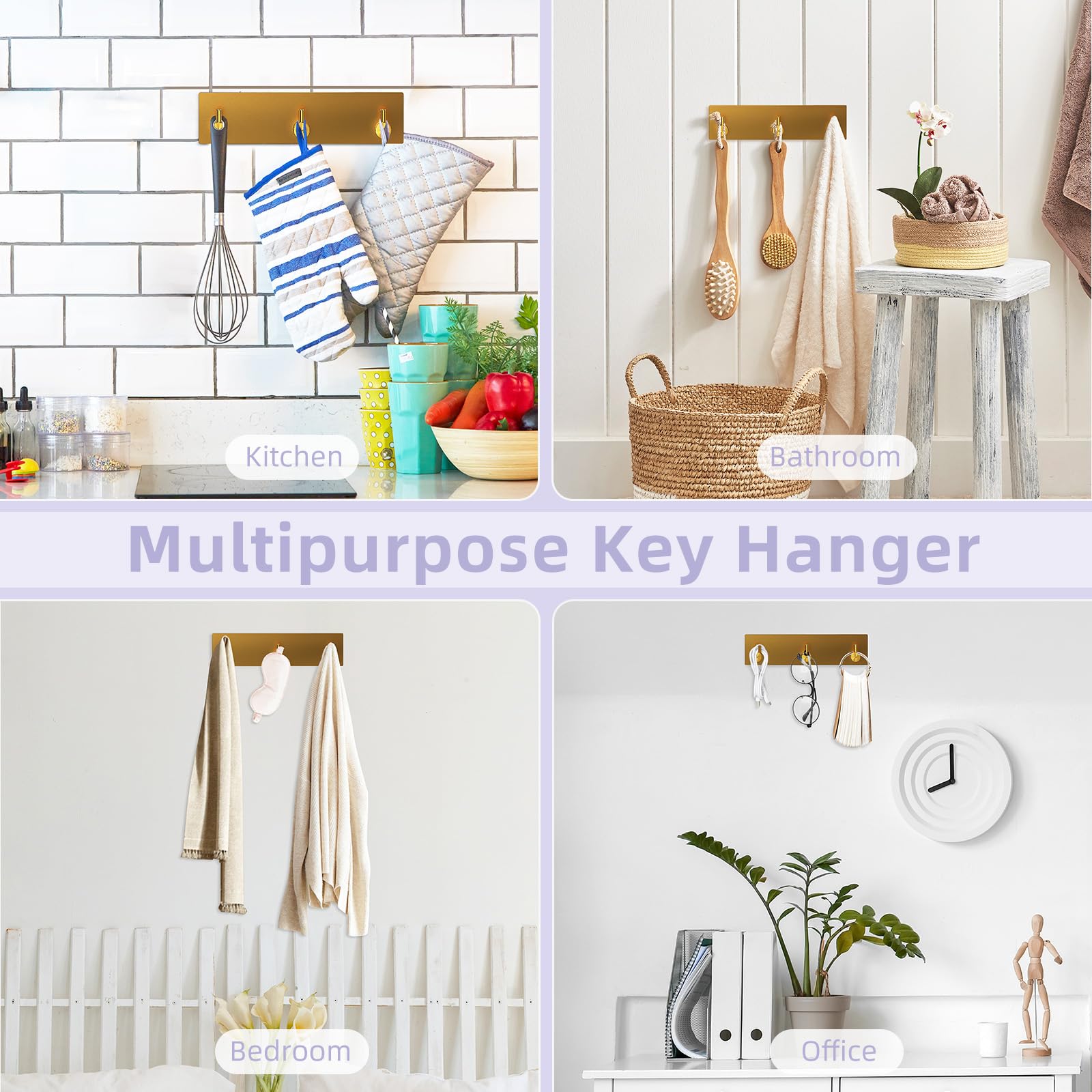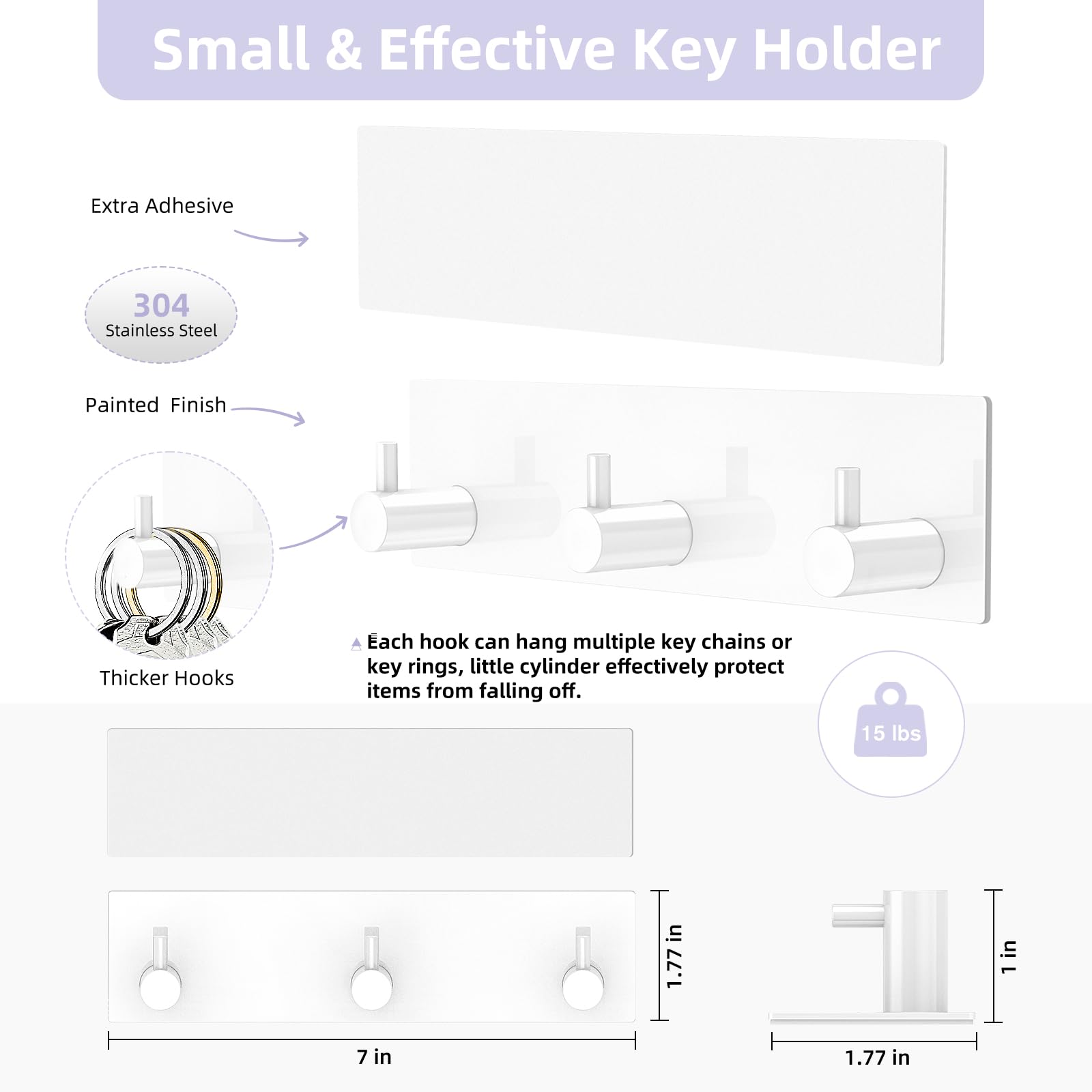 - Heavy Duty: Metal key rail with 3 key hooks are spread apart well, thick and strong, little pillars effectively protects items from falling off; strong adhesion, smallish look yet holds the weight of multiple keychains or keyrings without any issue; easy to hang and grab keys or badges as heading out the door, no more looking around the house aimlessly for necessaries
