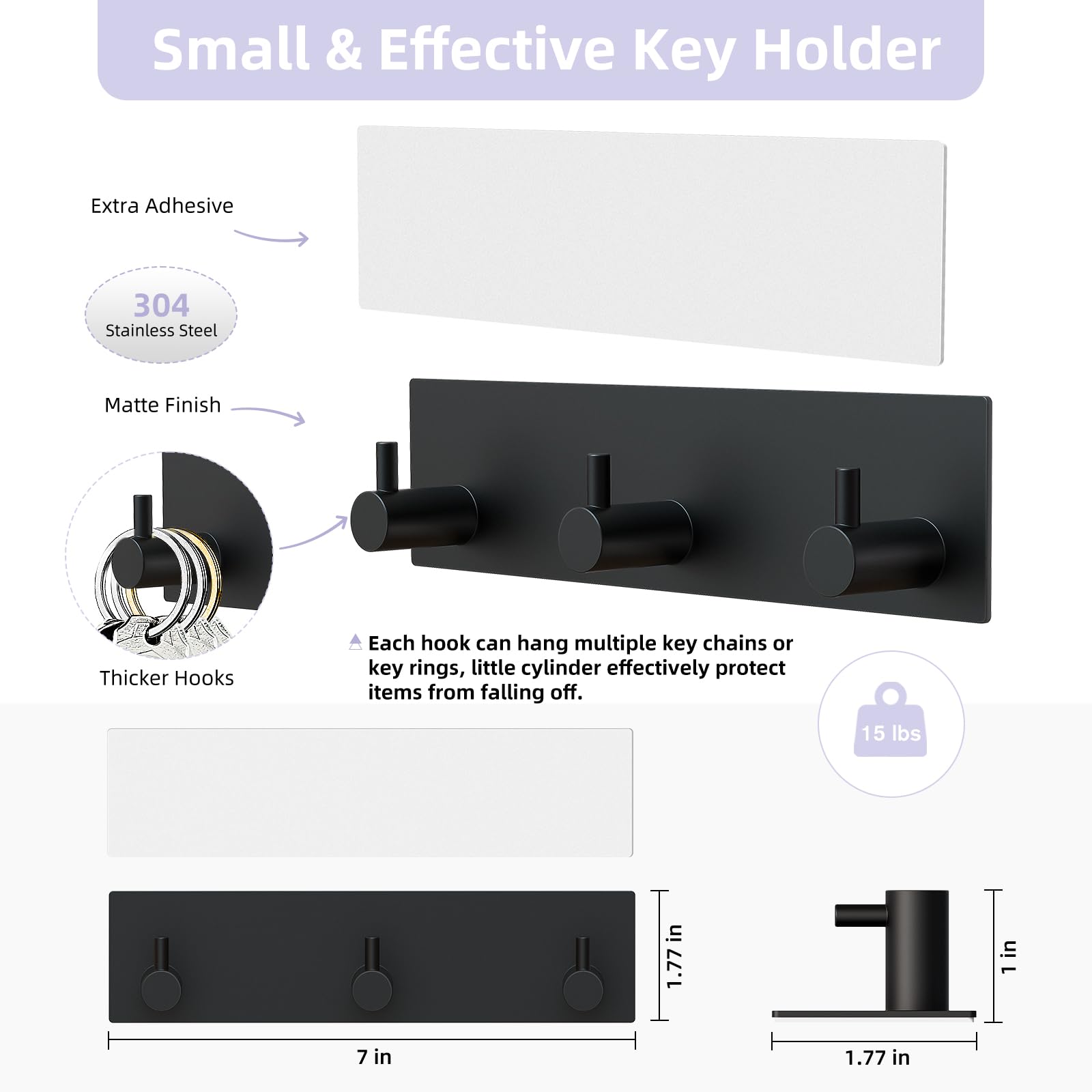 - Well Made: Adhesive key holder is crafted from solid 304 stainless steel material; surface nice matte black finish, stands wear and tear, looks simple and modern; minimalist design complements any home decor beautifully