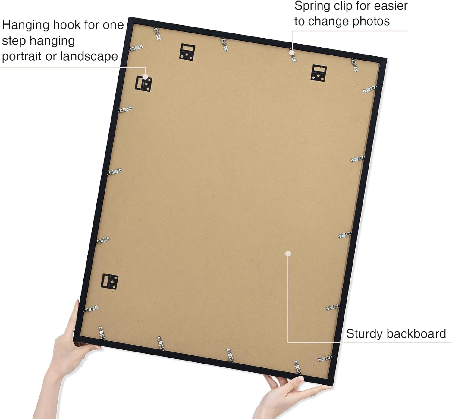 - Easy Installation and Display: The frames come with a rotating latch mechanism for easy removal of the backing, facilitating quick changes of pictures. They can be hung both horizontally and vertically, providing flexibility in display options